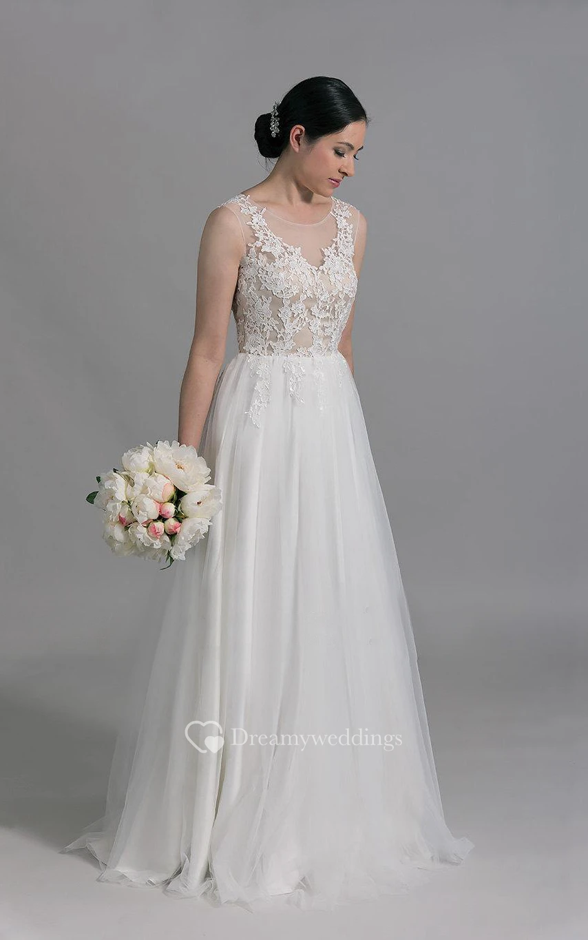 Lace and Tulle Sleeveless Scoop Neckline Dress With Pleats