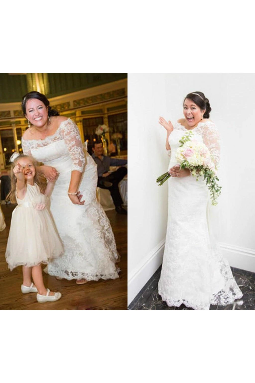 Lace Beach Long Sleeve Appliques Off Shoulder Plus Size Bridal Gowns