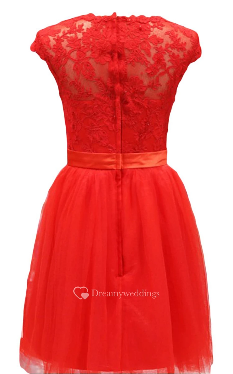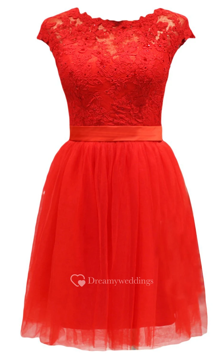 Lace Bodice Dress With Satin Belt and Tulle Skirt