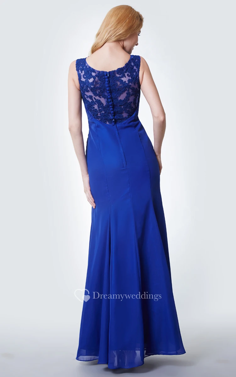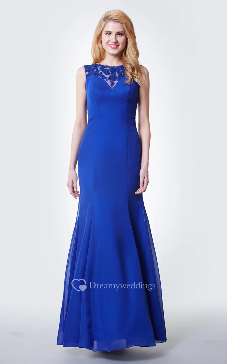 Lace Cap-sleeved Mermaid Long Chiffon Dress With Illusion Back