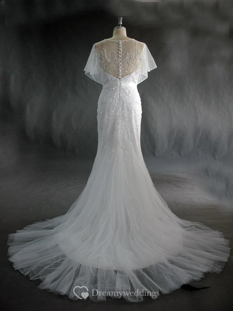 Lace Embellished Tulle Mermaid Dress With Illusion Back