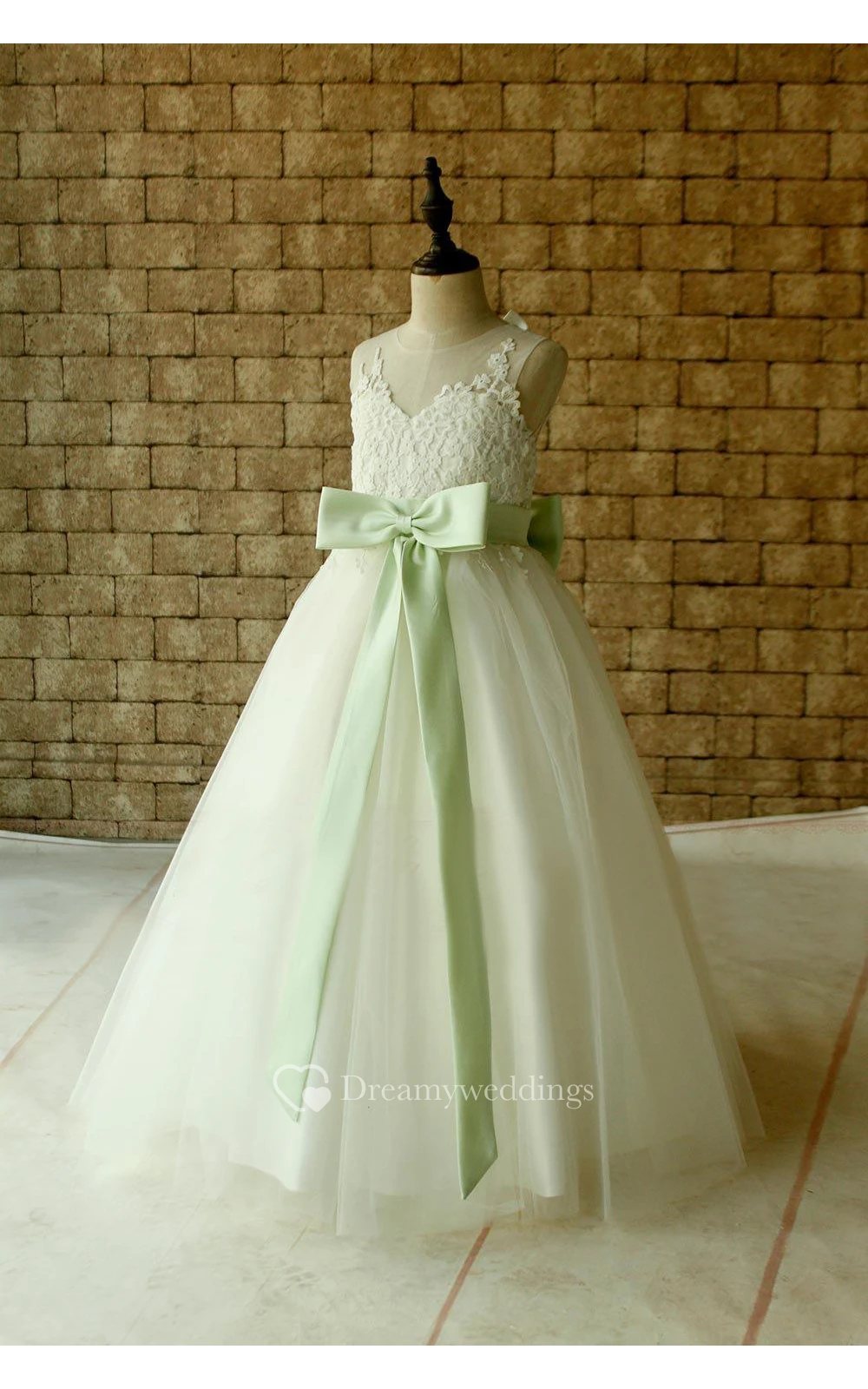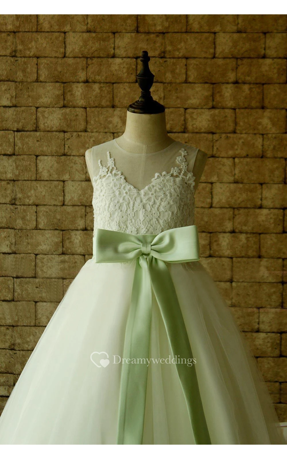 Lace Illusion Neckline Pleated Tulle Ball Gown With Keyhole and Bows