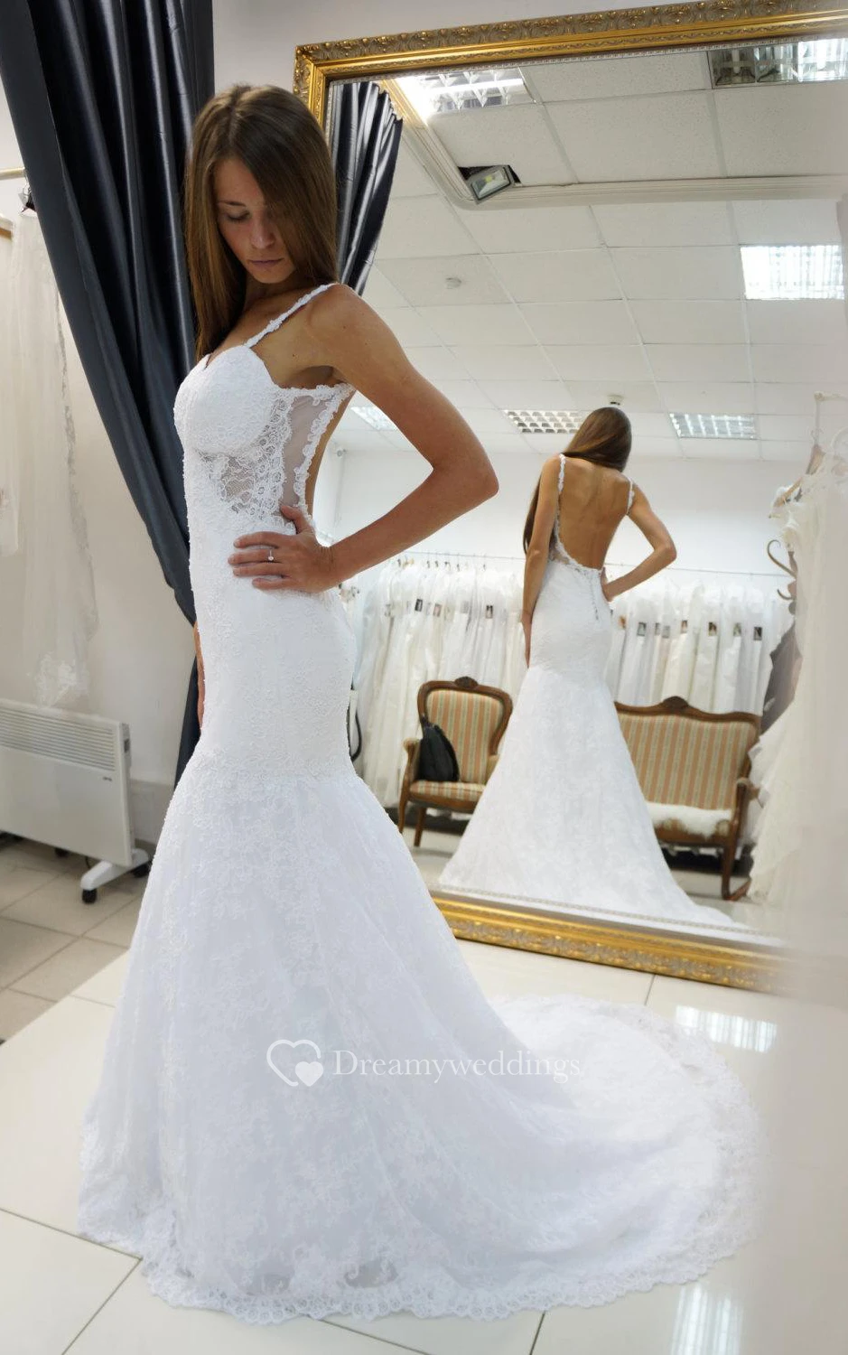 Lace Mermaid Dress With Open Back and Spaghetti Straps