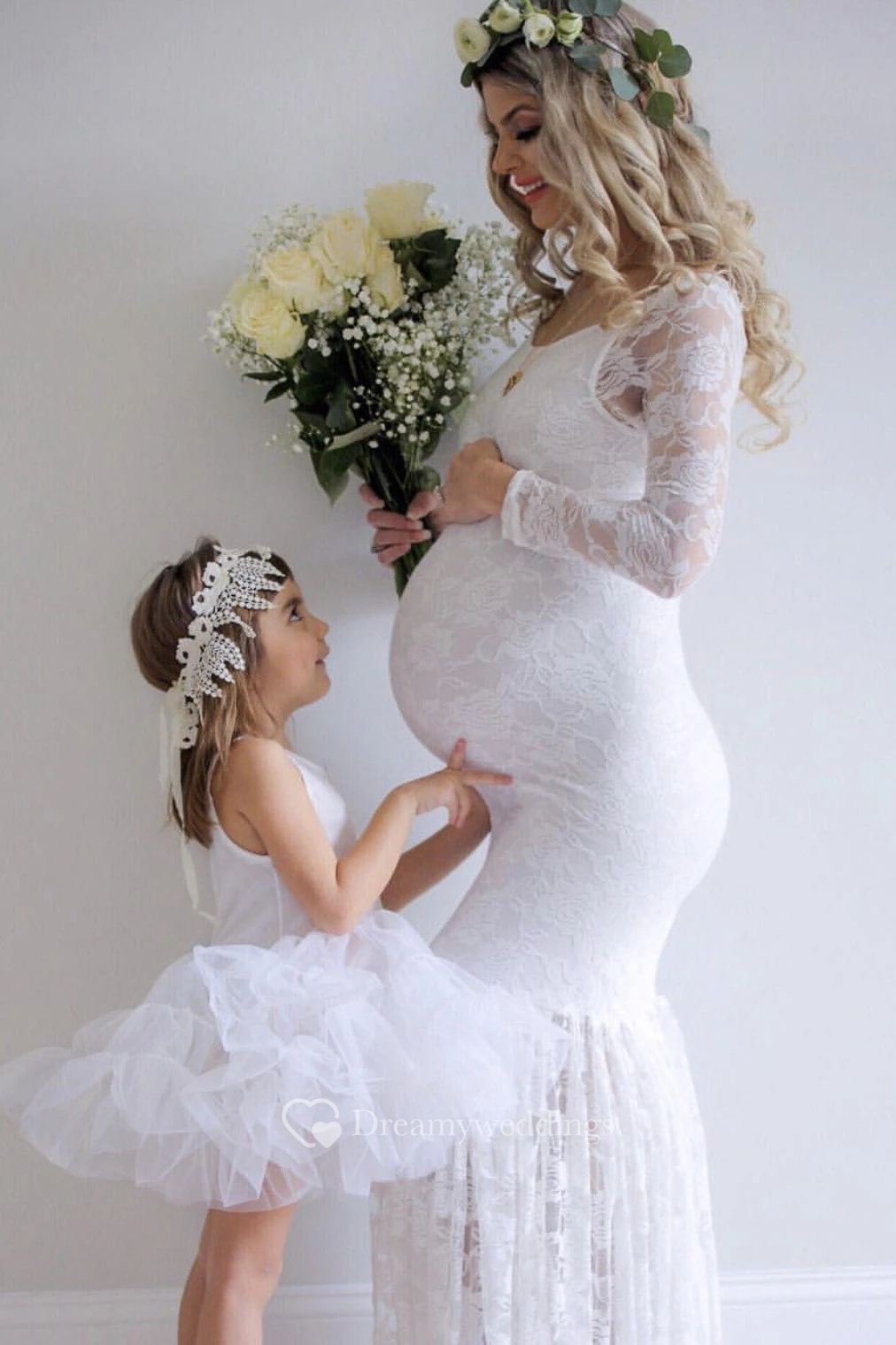 Lace Mermaid Illusion Long Sleeve Scoop Maternity Wedding Dress