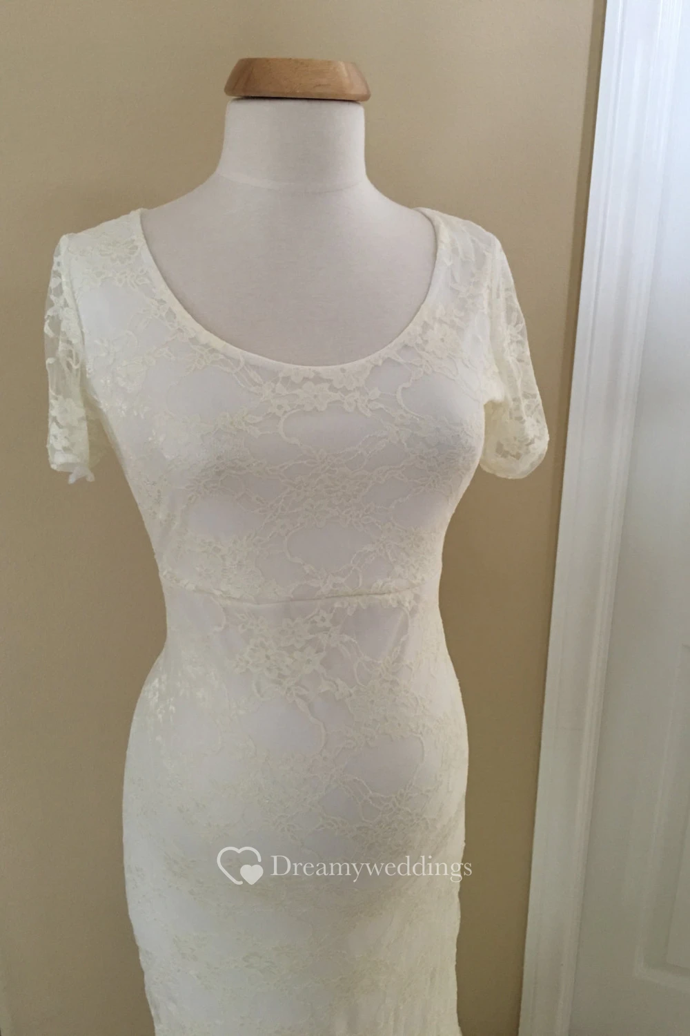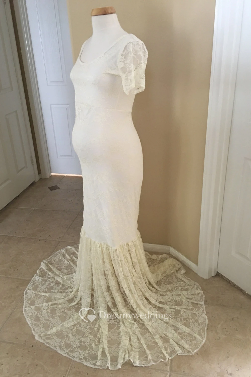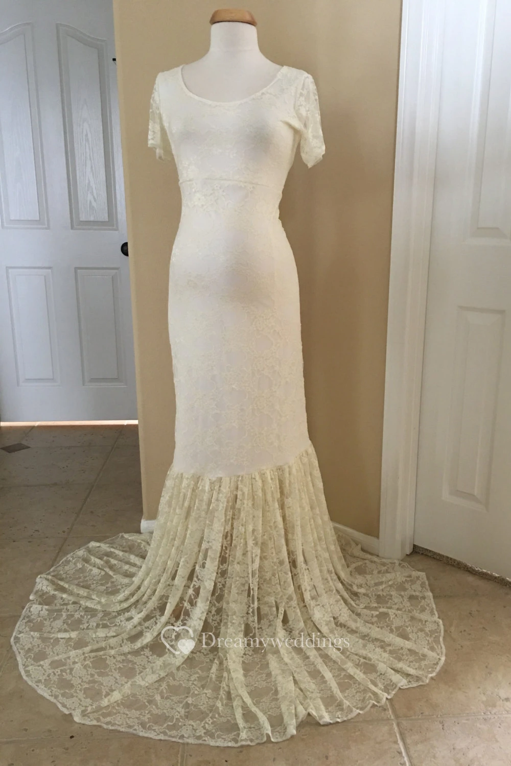 Lace Mermaid Illusion Short Sleeve Scoop Maternity Wedding Dress