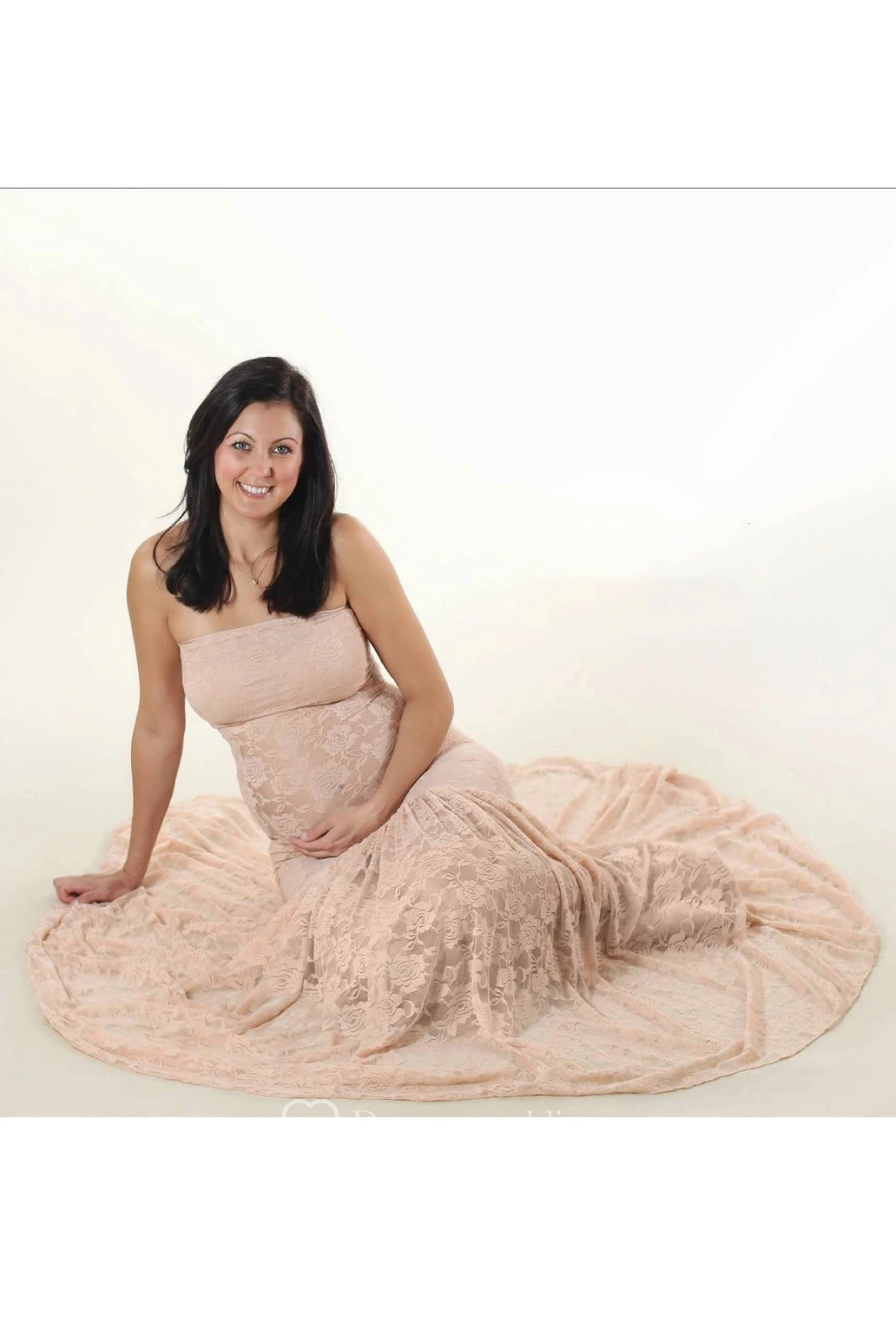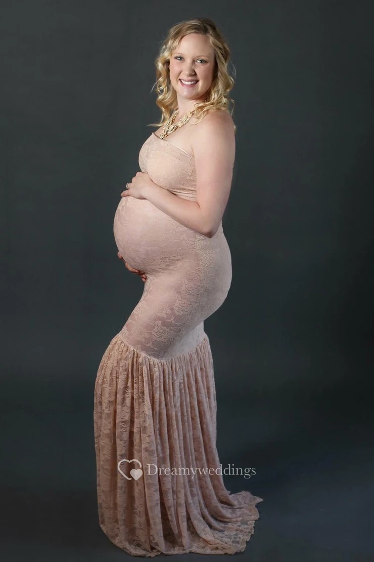 Lace Mermaid Sleeveless Strapless Maternity Dress