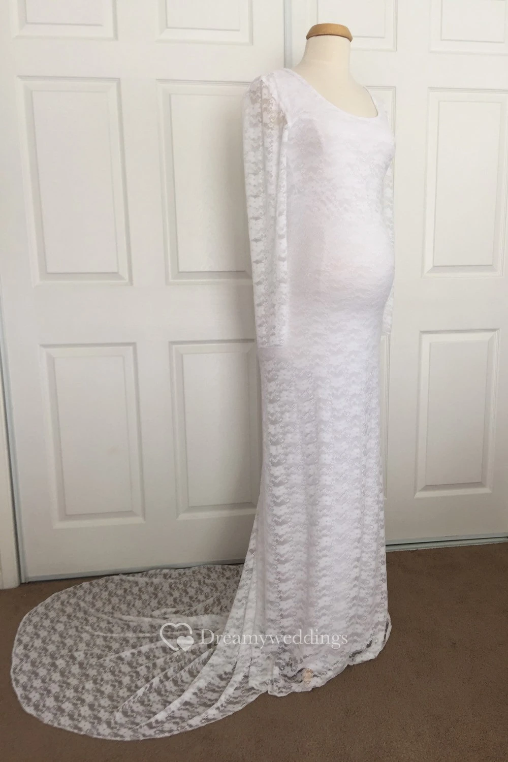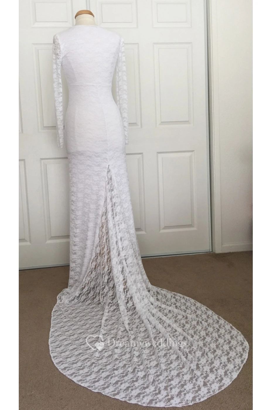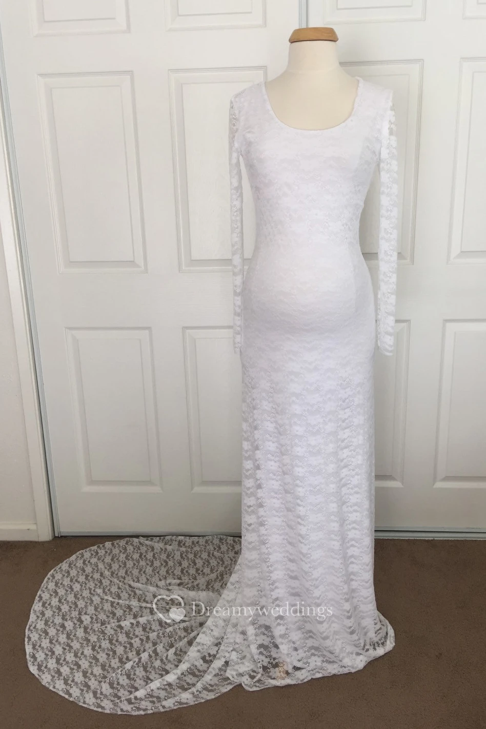 Lace Sheath Illusion Long Sleeve Scoop Maternity Wedding Dress
