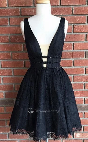 Lace Short A Line Sleeveless Simple Sexy Homecoming Dress with Beading