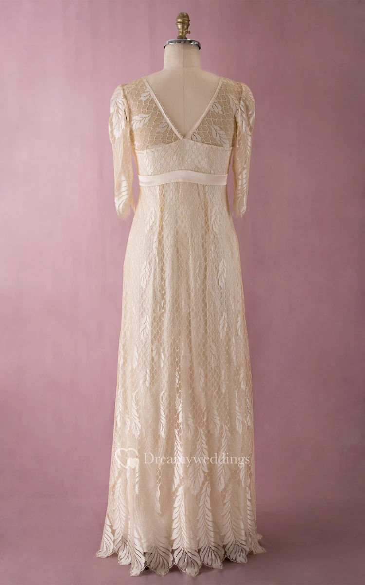 Lace Simple-Designed V-Neck V Back Dress