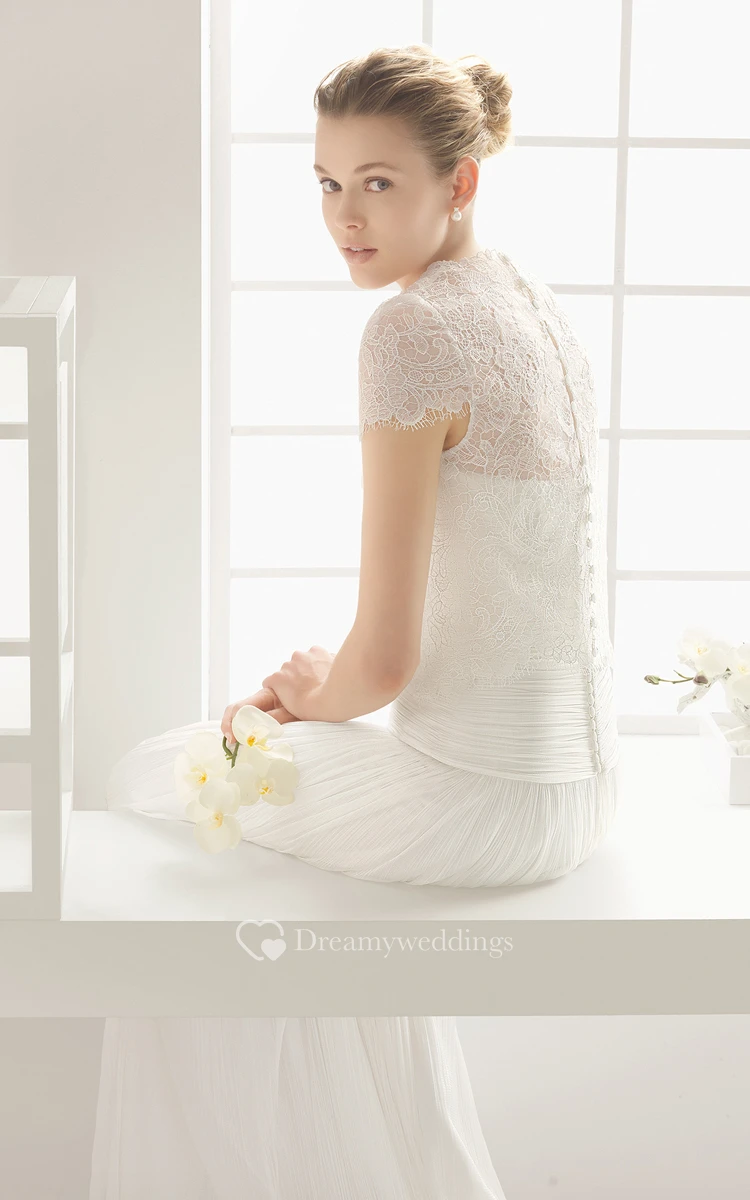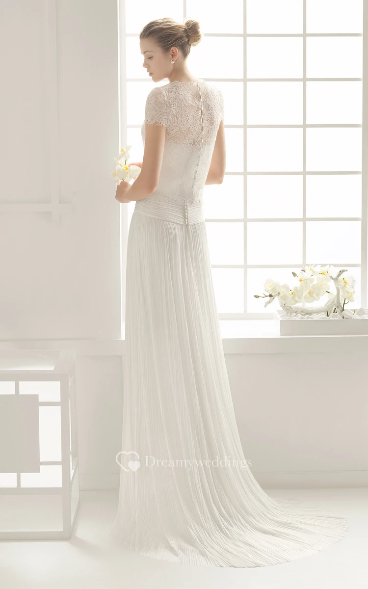 Lacy Bodice Pleated Dress With Dropped Ruched Waist