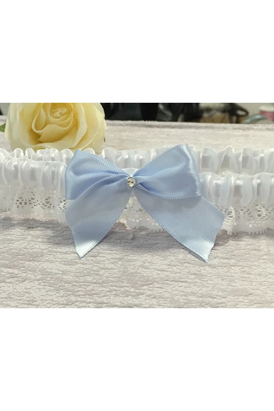 Large Light Blue Bow Lace Elastic Garter Within 16-23inch