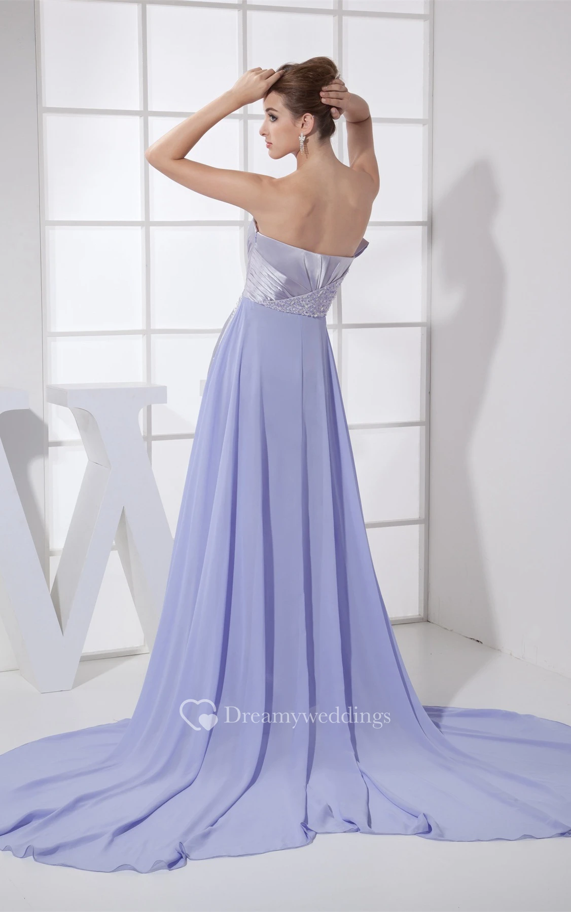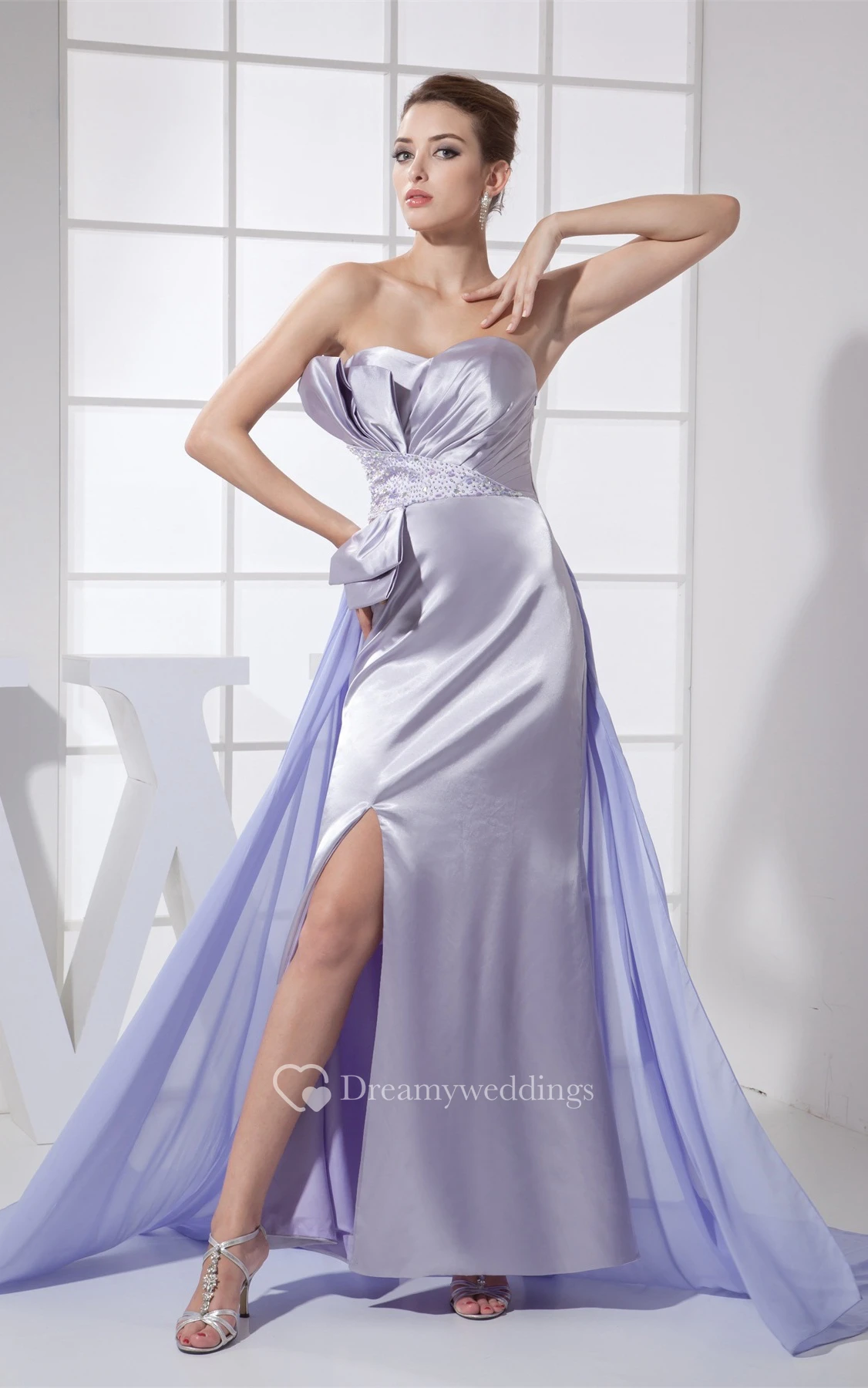 Layered Ruched Sweetheart Ankle Length Satin Dress With Side Zipper and Beadings