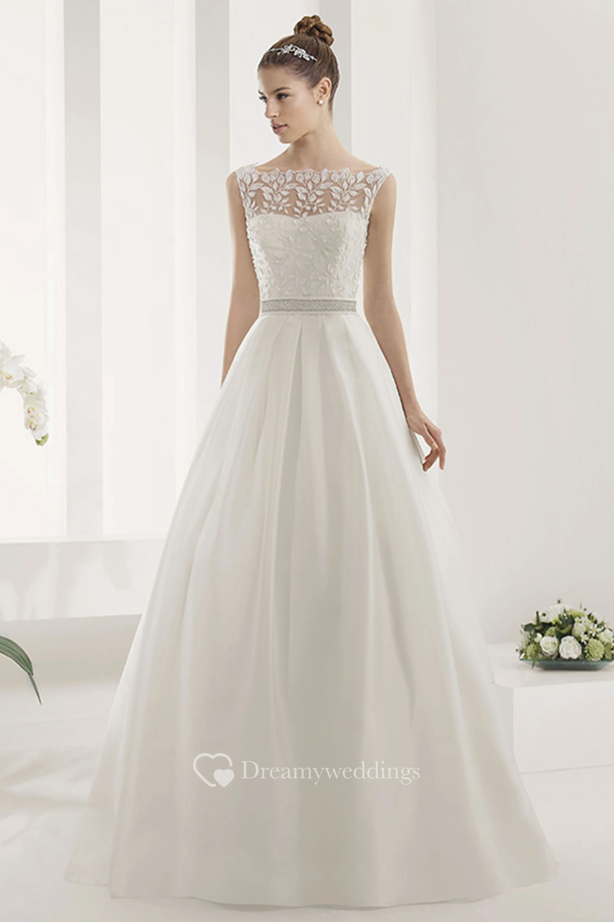 Leaf-appliqued Top Taffeta Wedding Gown With Back Bows