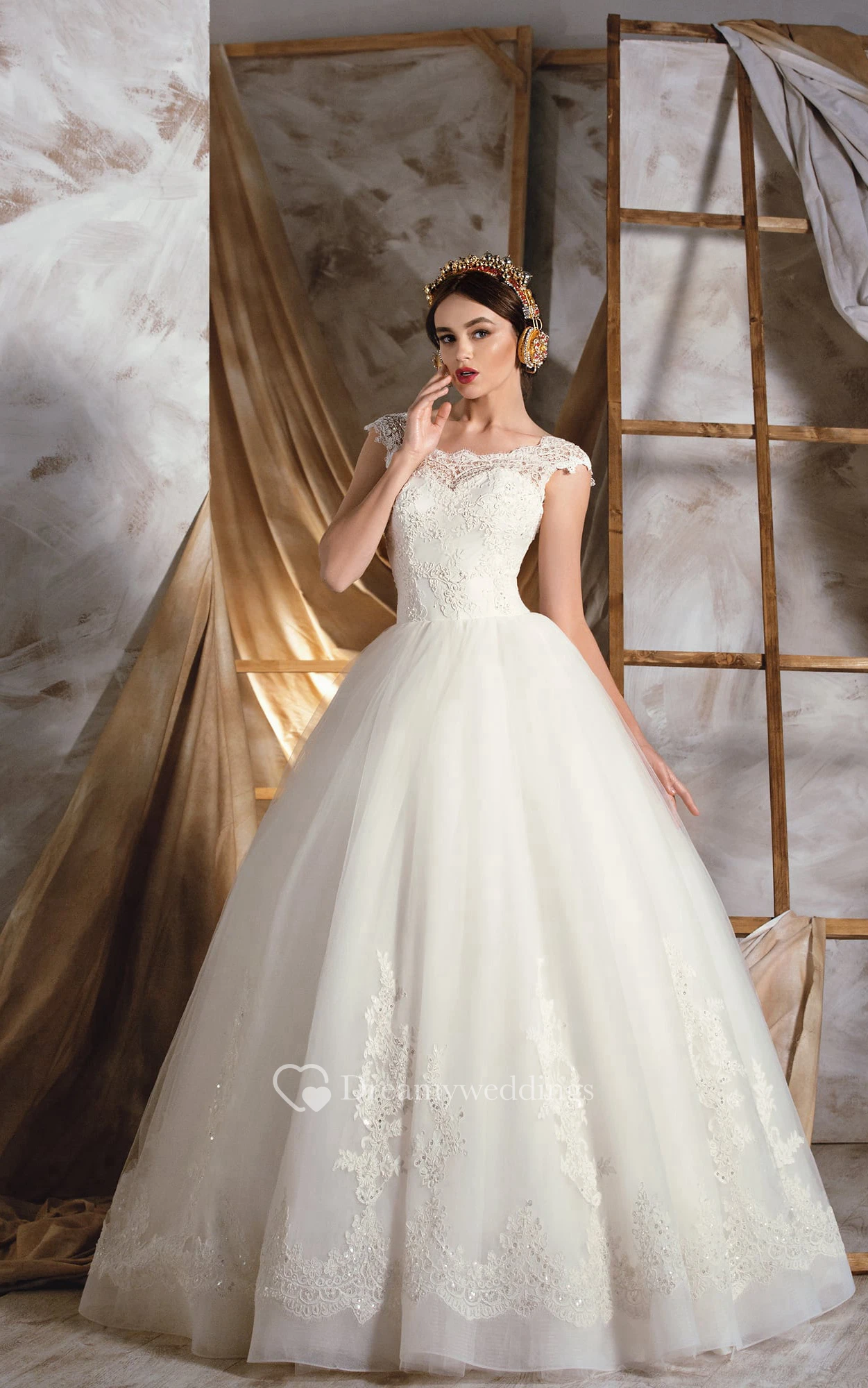 Long A-line Organza Wedding Dress With Lace Bodice And Appliques