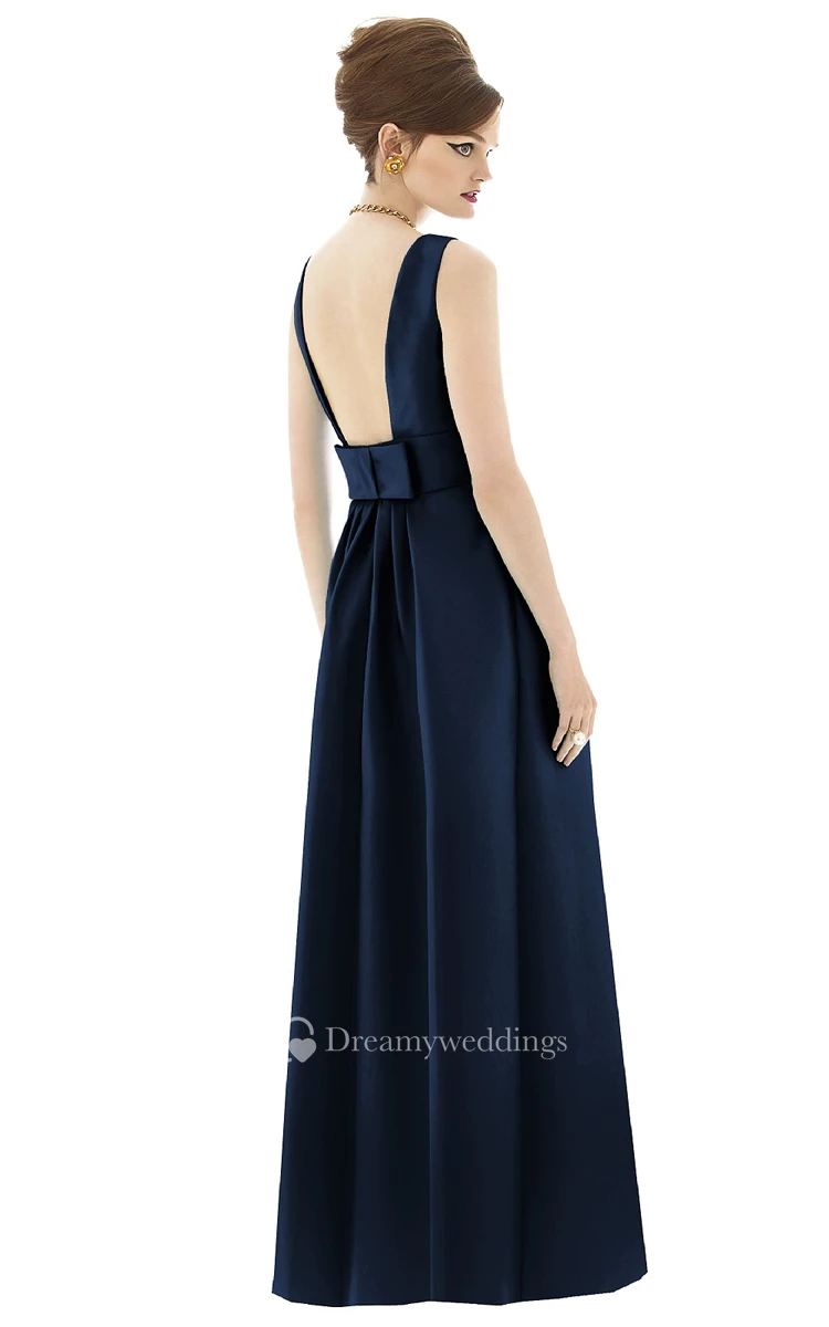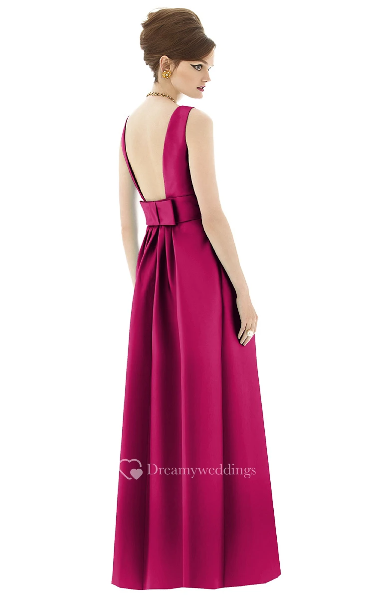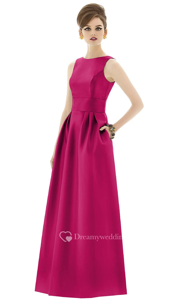 Long Bateau Sleeveless Satin Dress with Pockets and Pleats