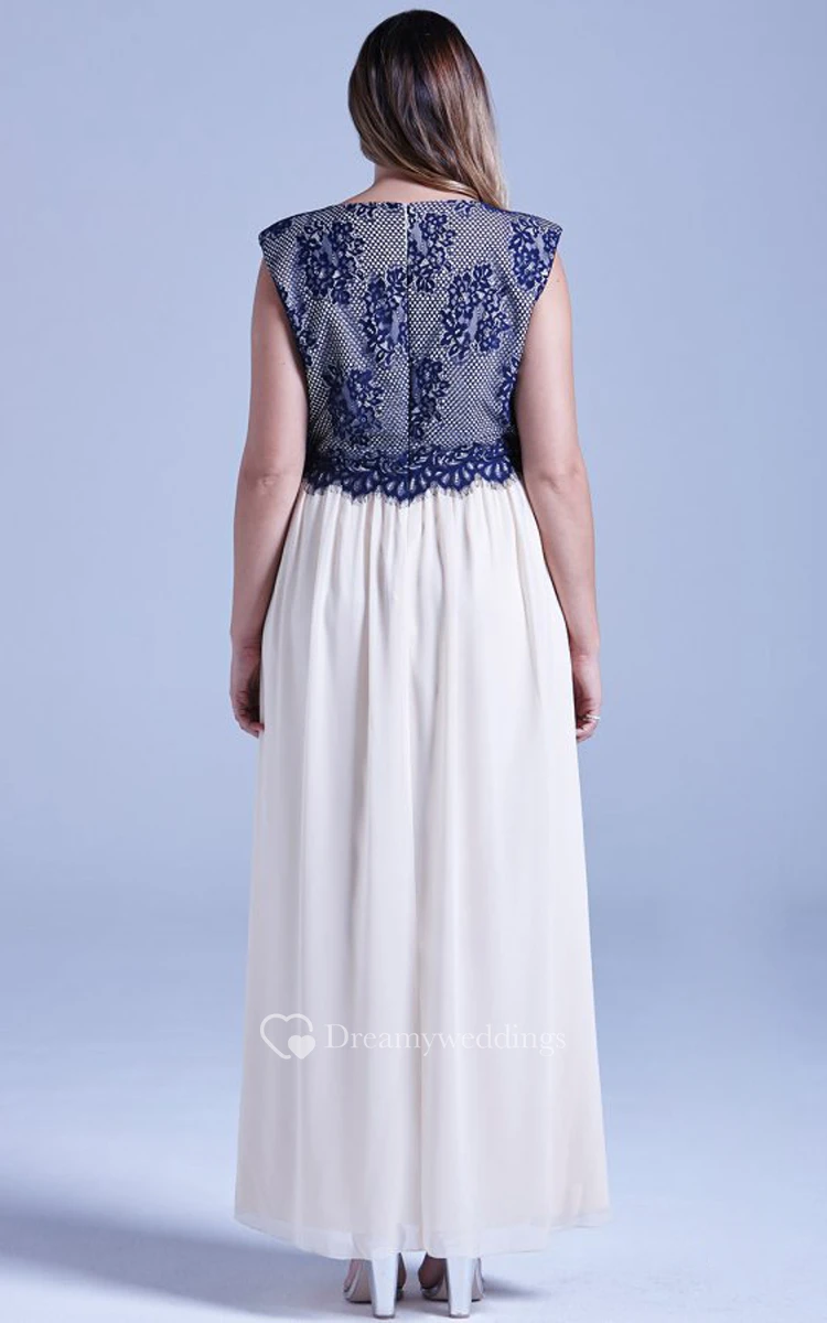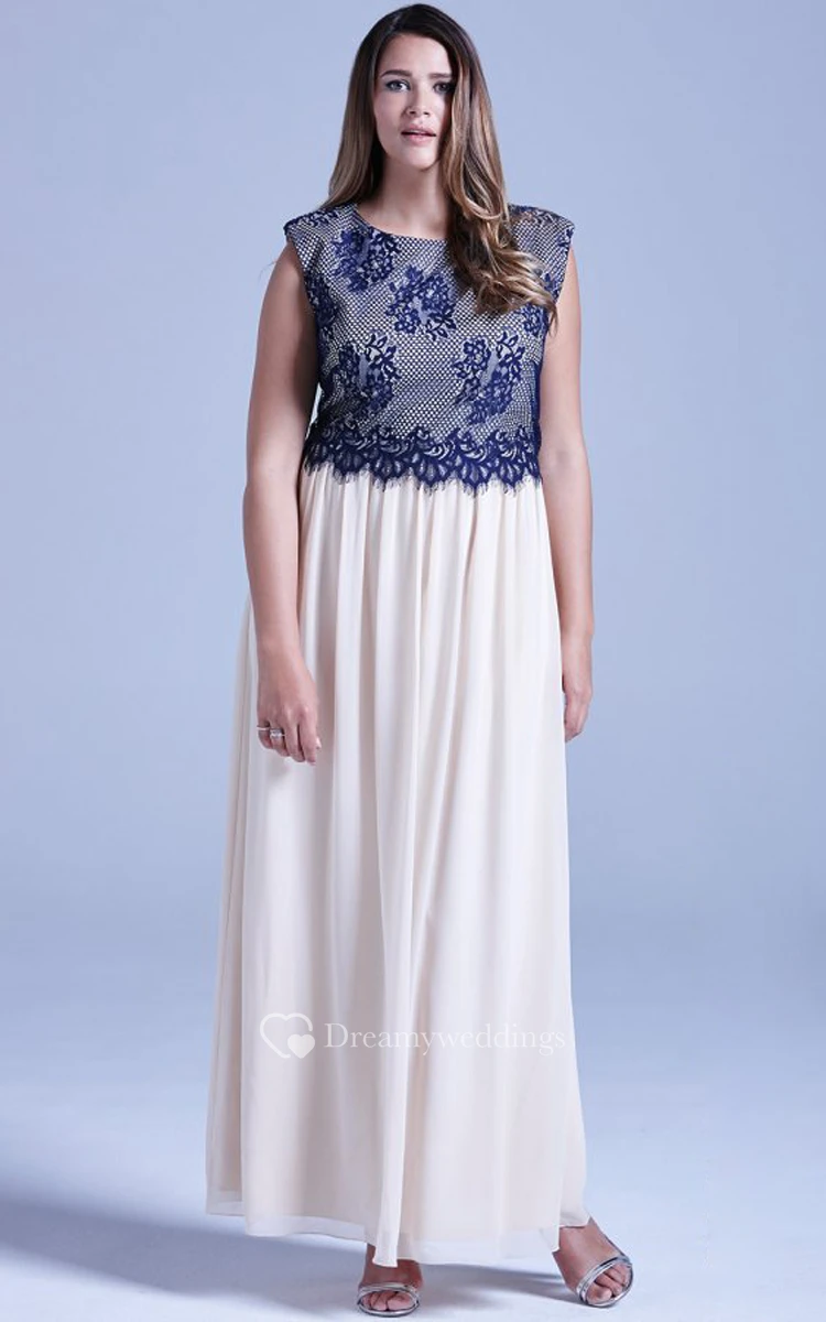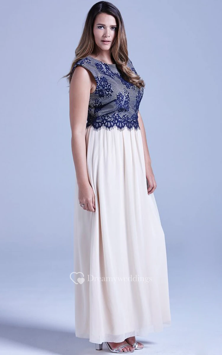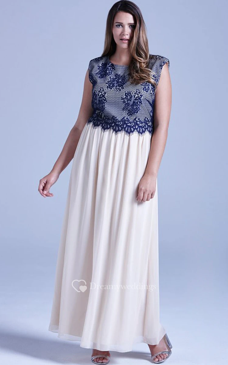 Long Cap-Sleeved Chiffon Fabulous Dress With Lace Bodice