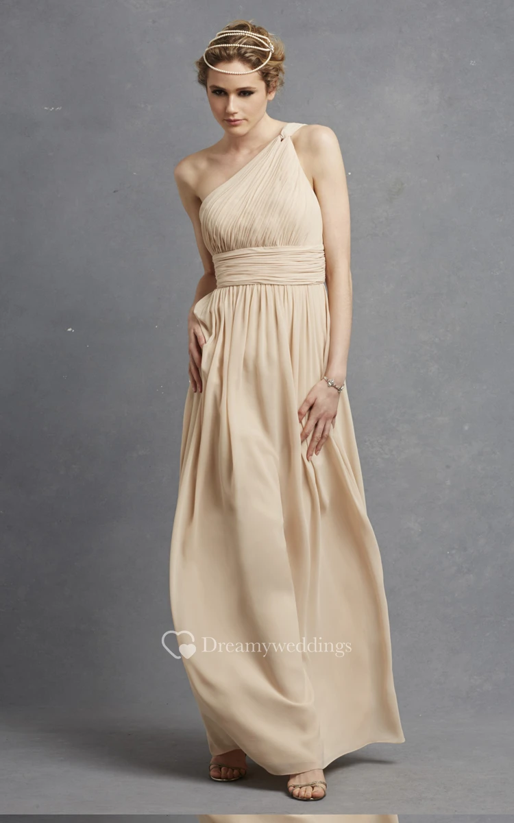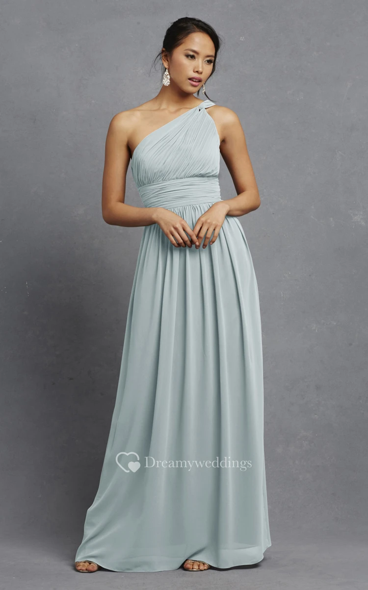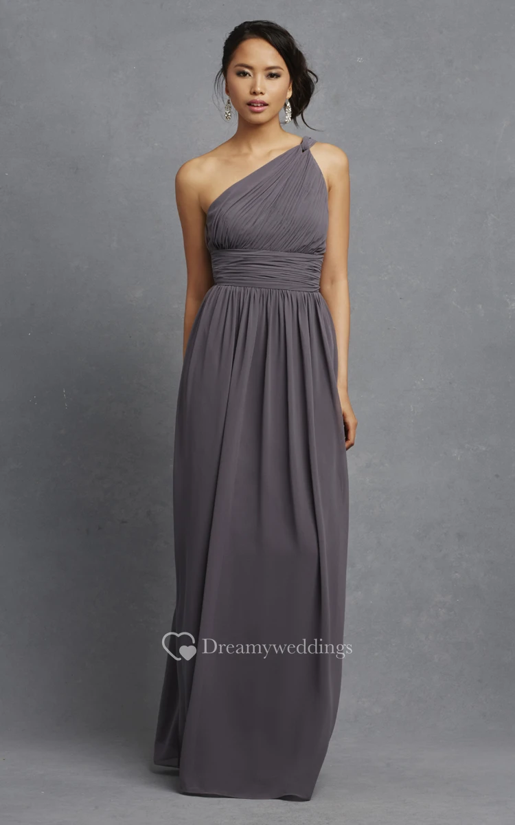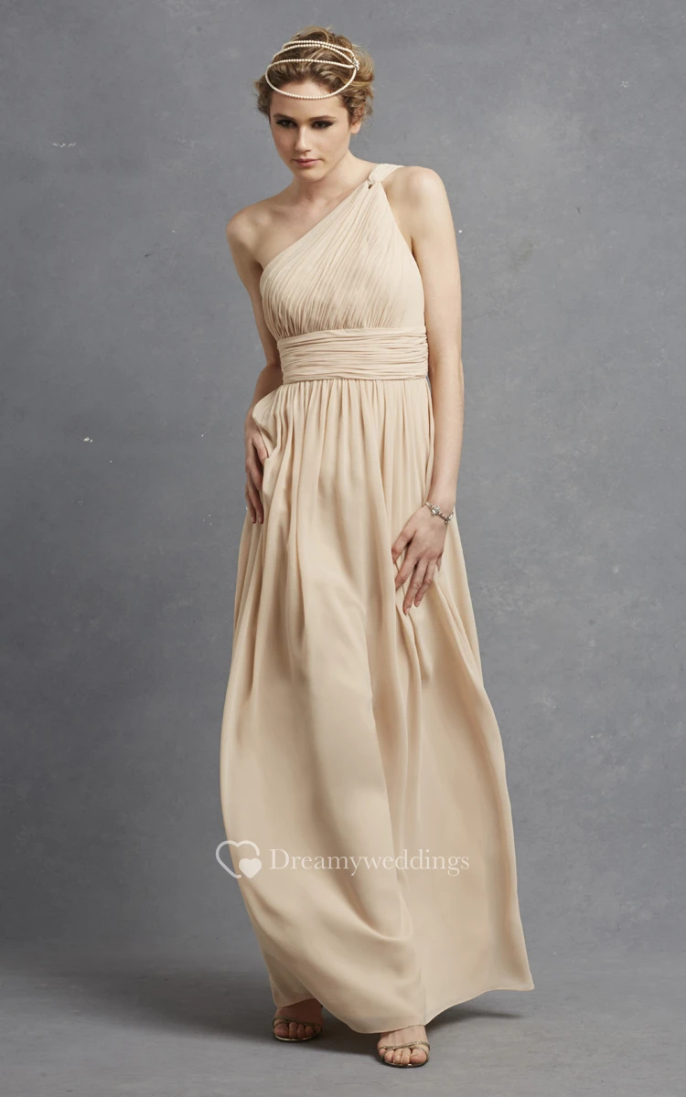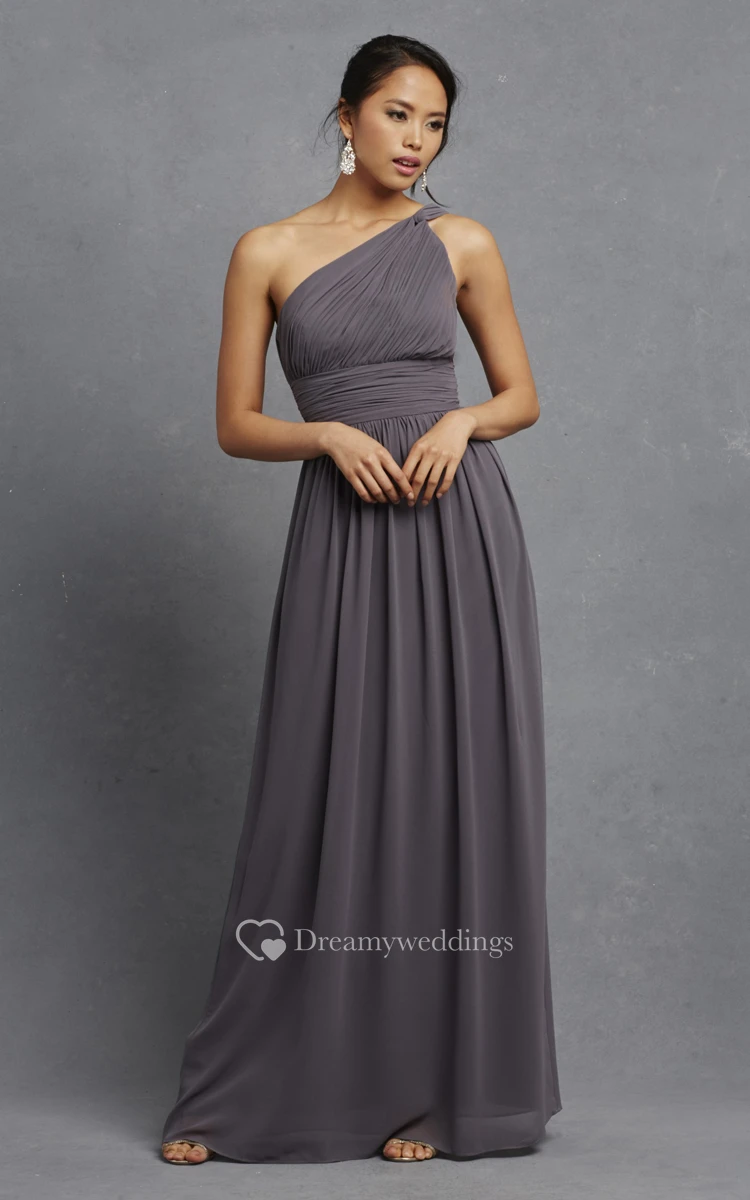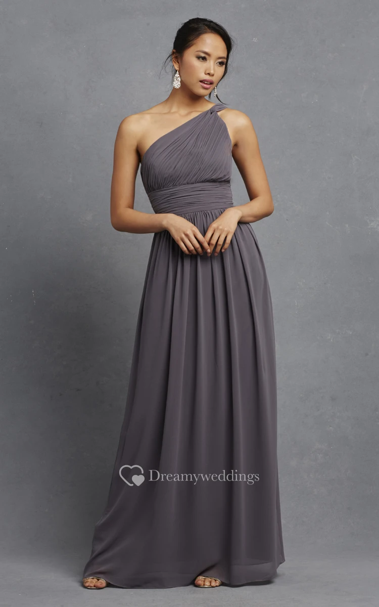 Long-Chiffon Modern One-Shoulder Dress With Ruching