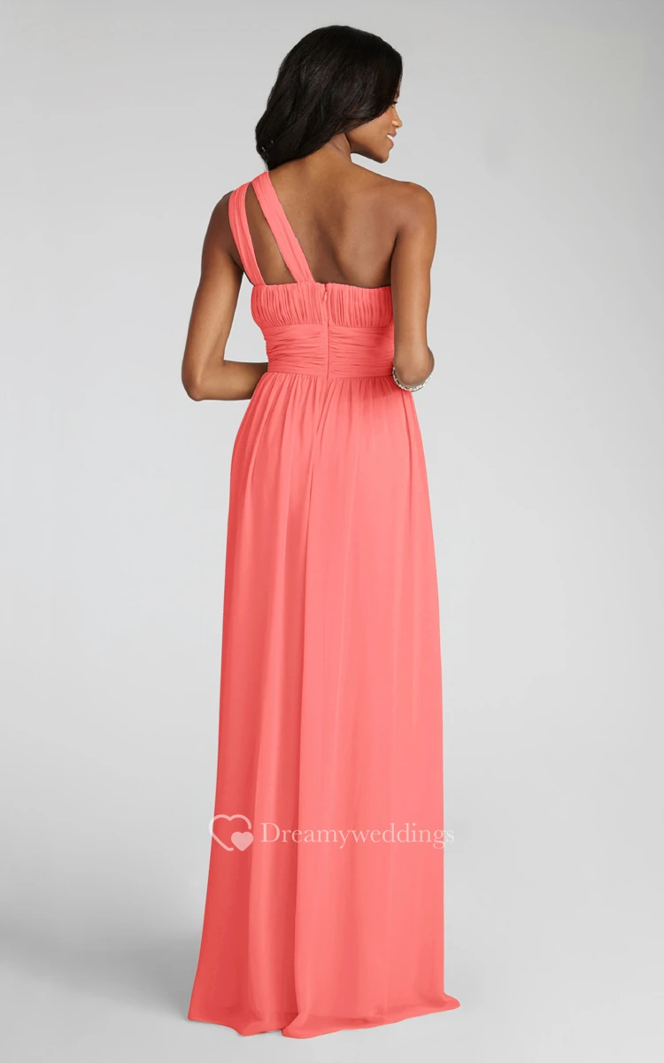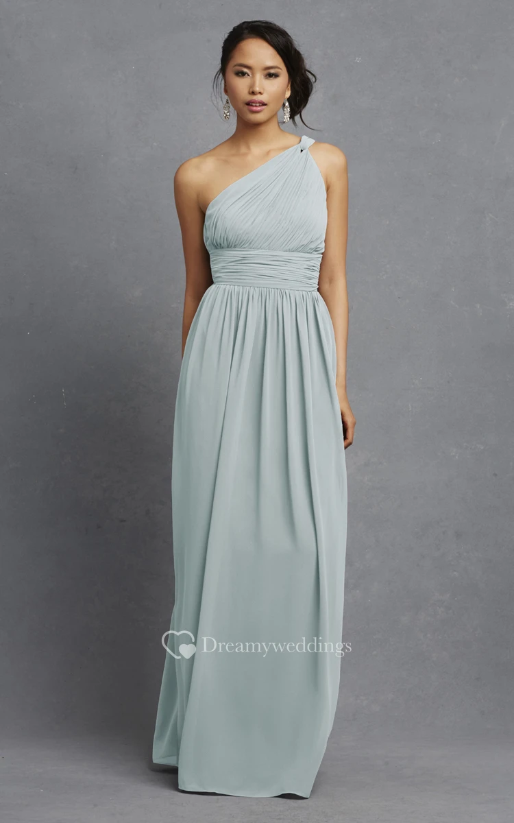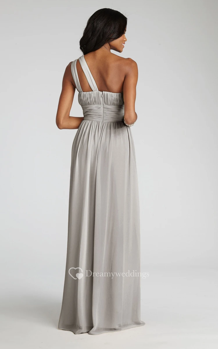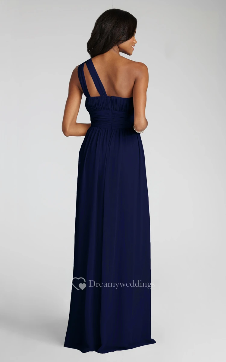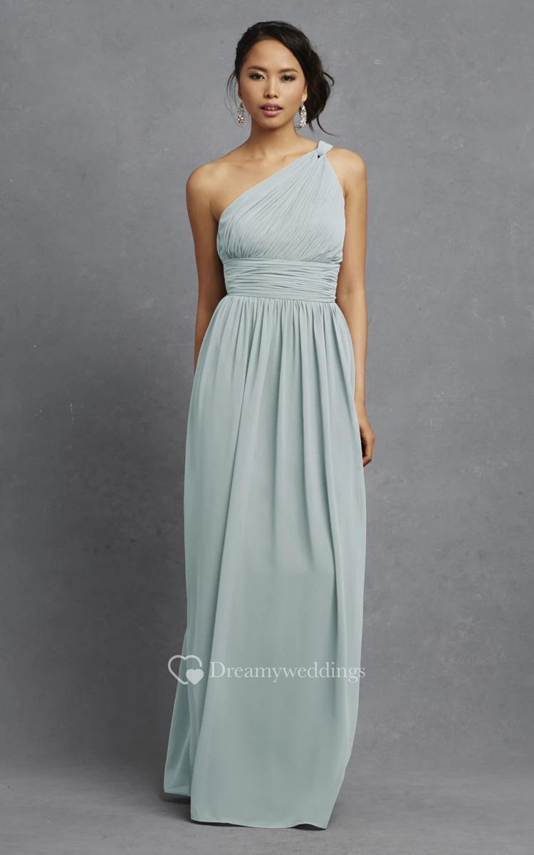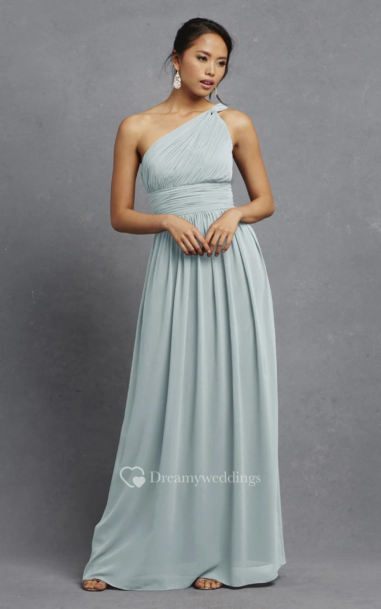 Long-Chiffon Modern One-Shoulder Dress With Ruching