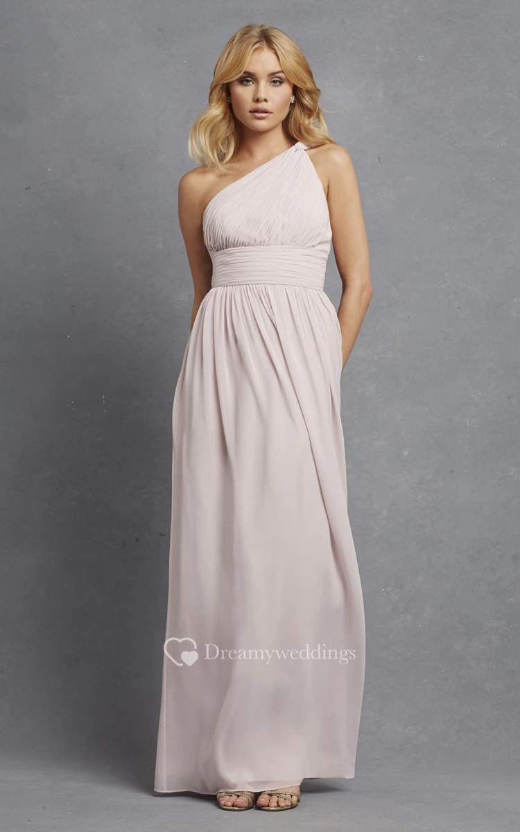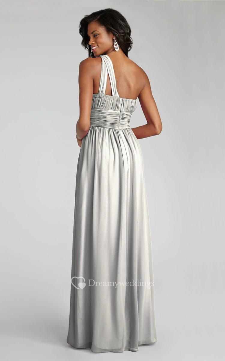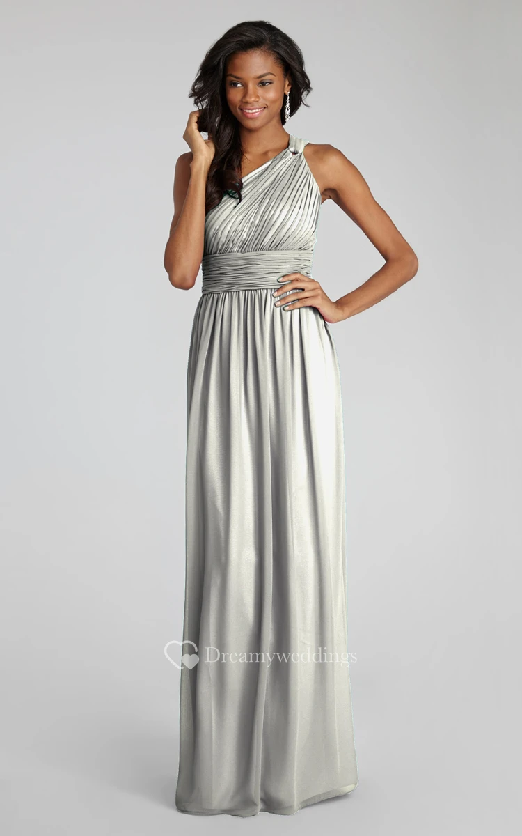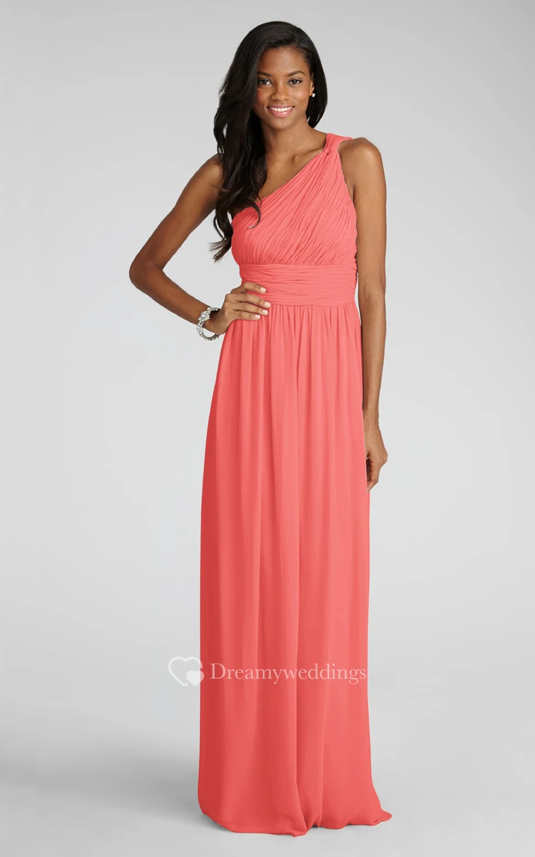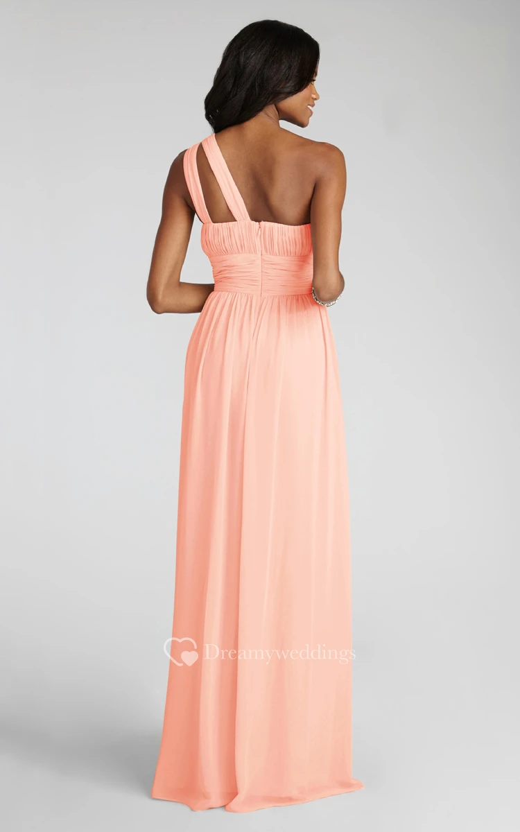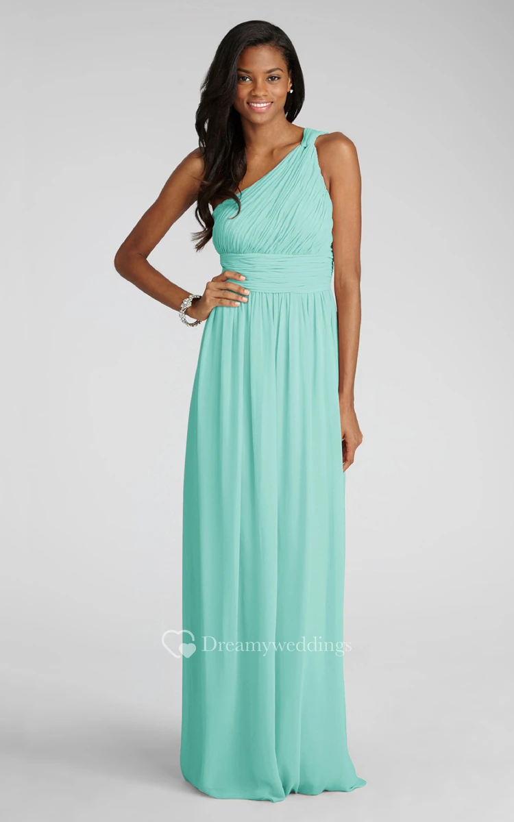 Long-Chiffon Modern One-Shoulder Dress With Ruching