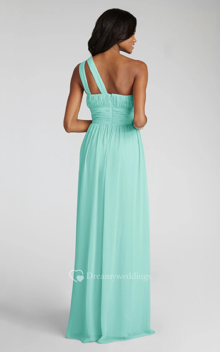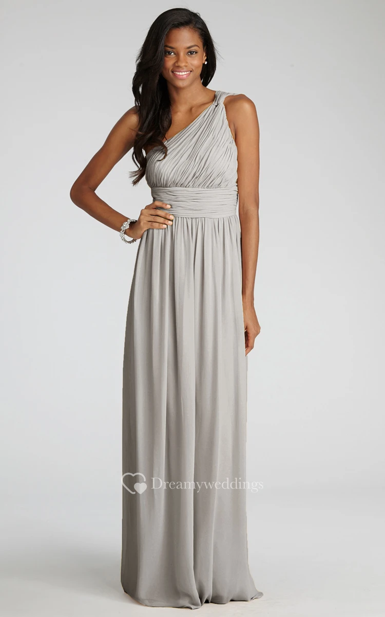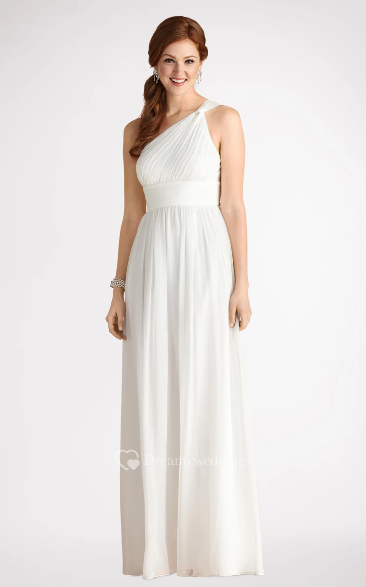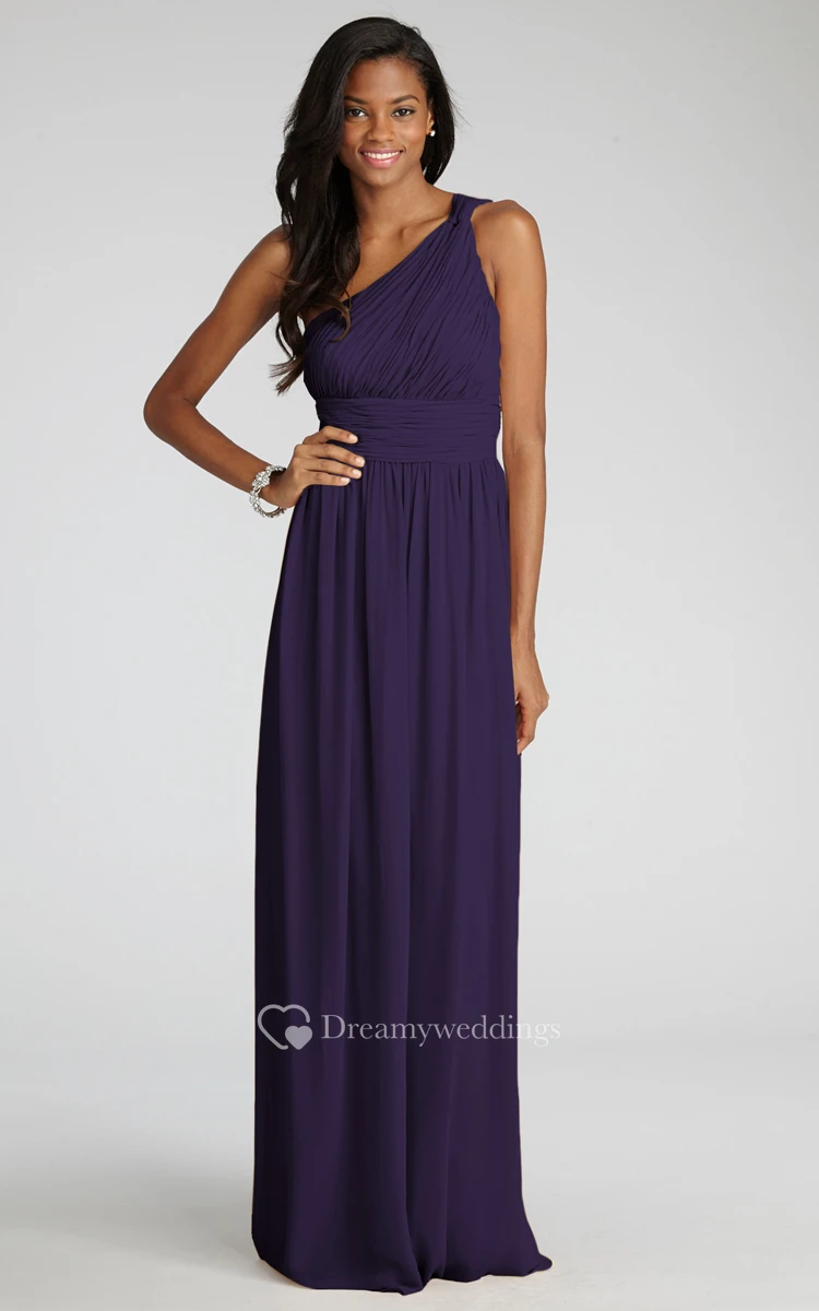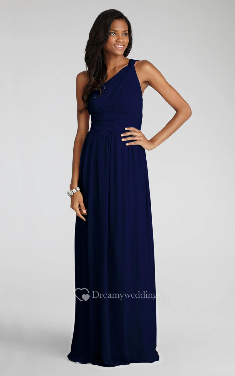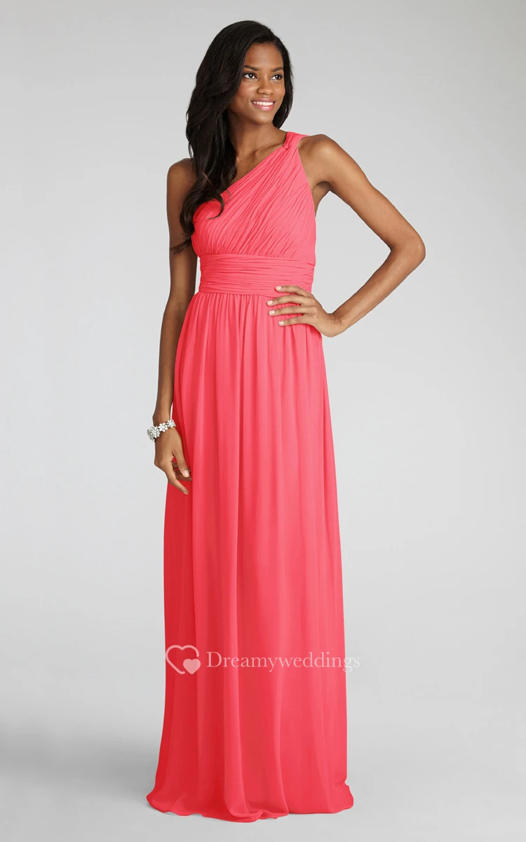 Long-Chiffon Modern One-Shoulder Dress With Ruching