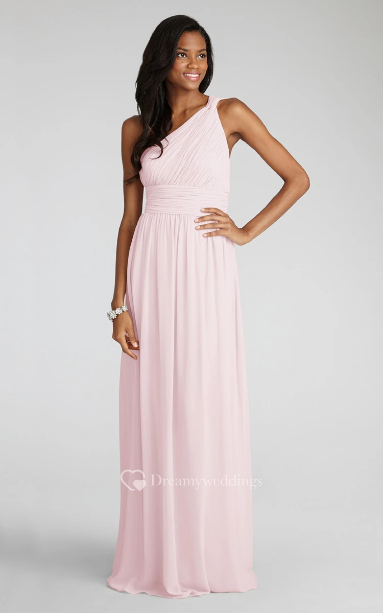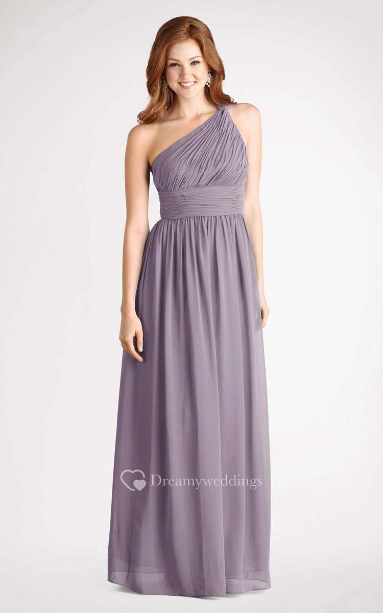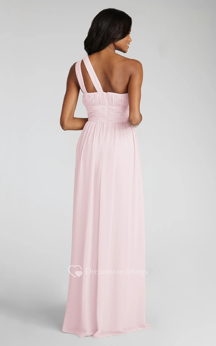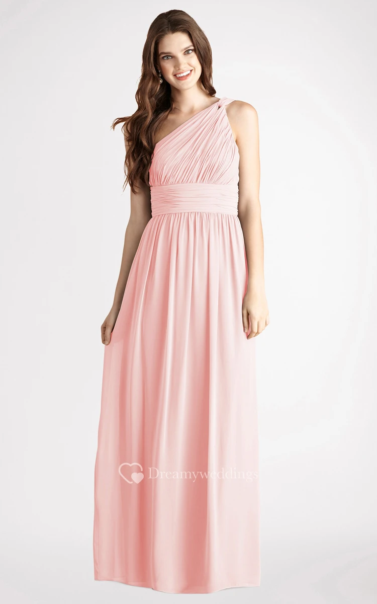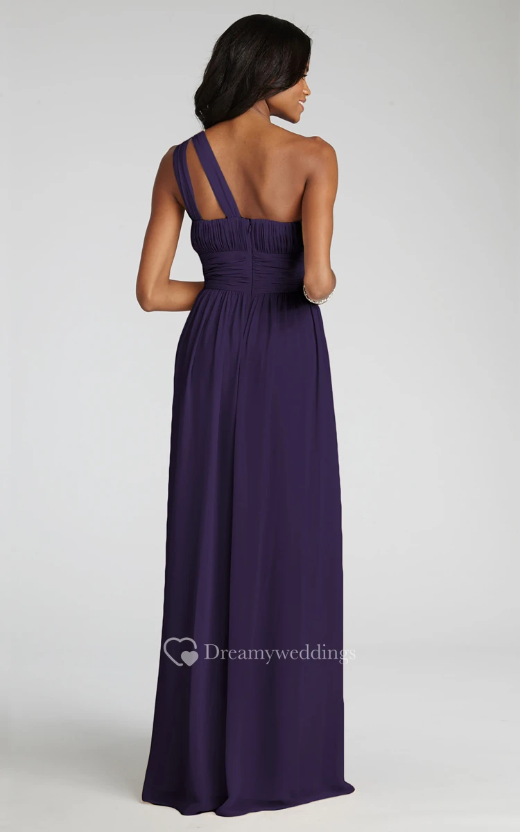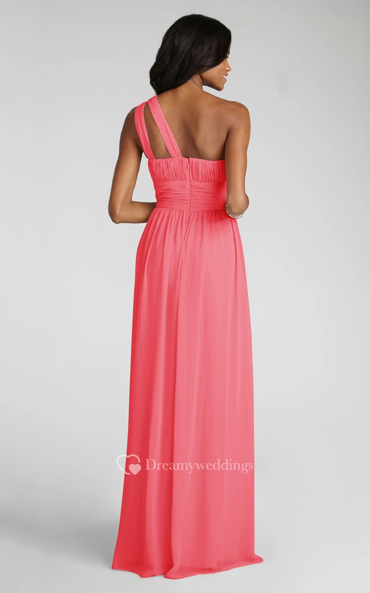 Long-Chiffon Modern One-Shoulder Dress With Ruching