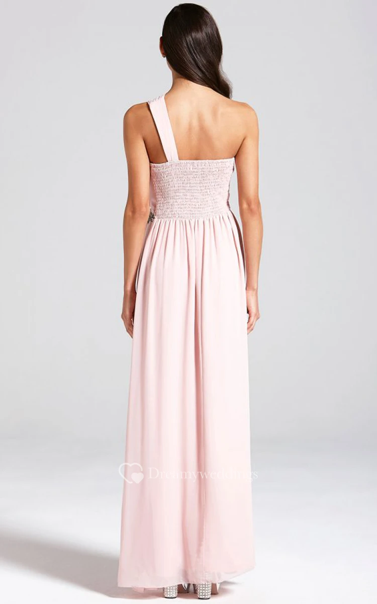 Long Chiffon One-Shoulder A-Line Chic Dress With Sash