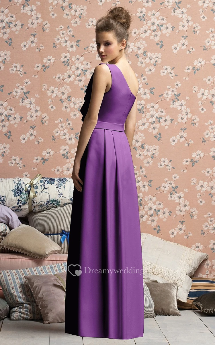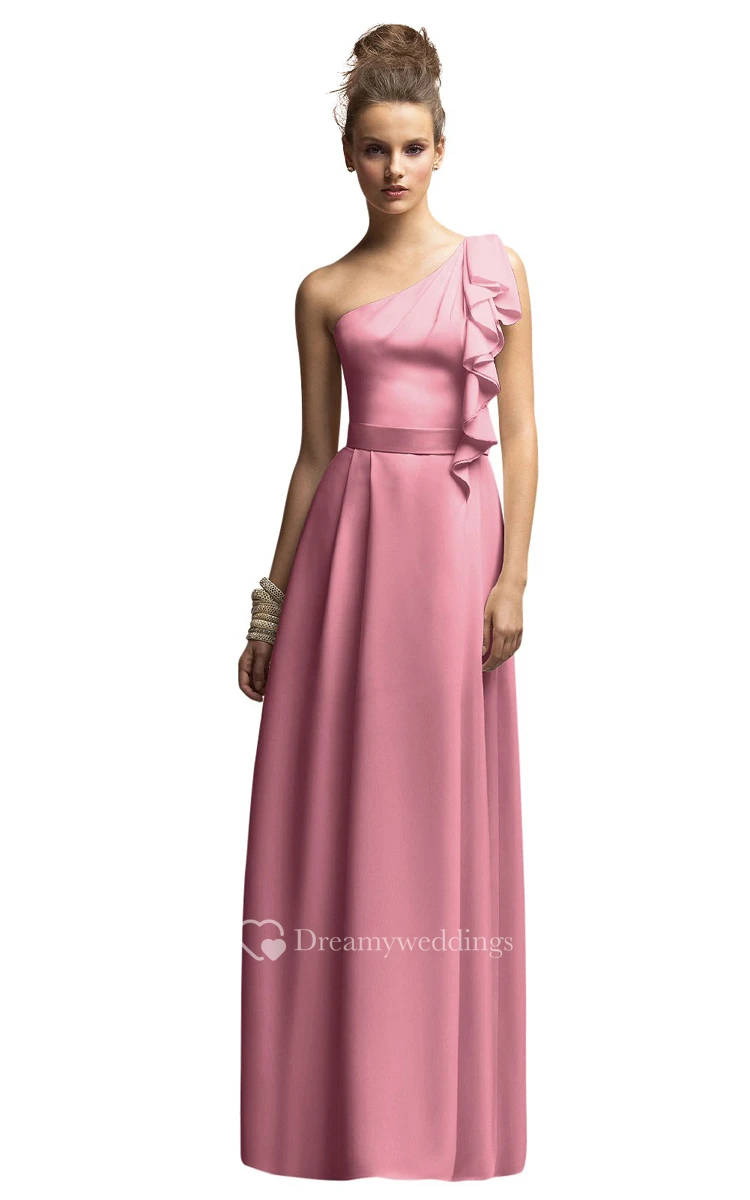 Long Chiffon One-Shoulder Dress With Satin Sash