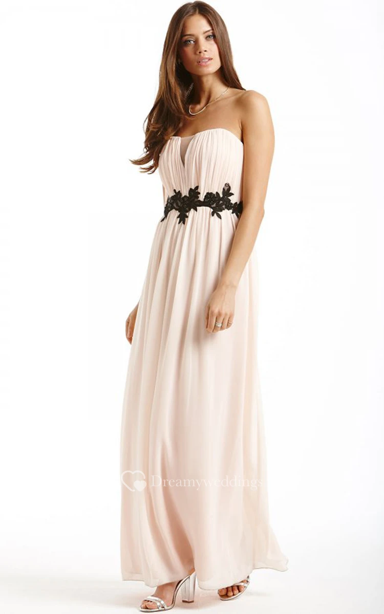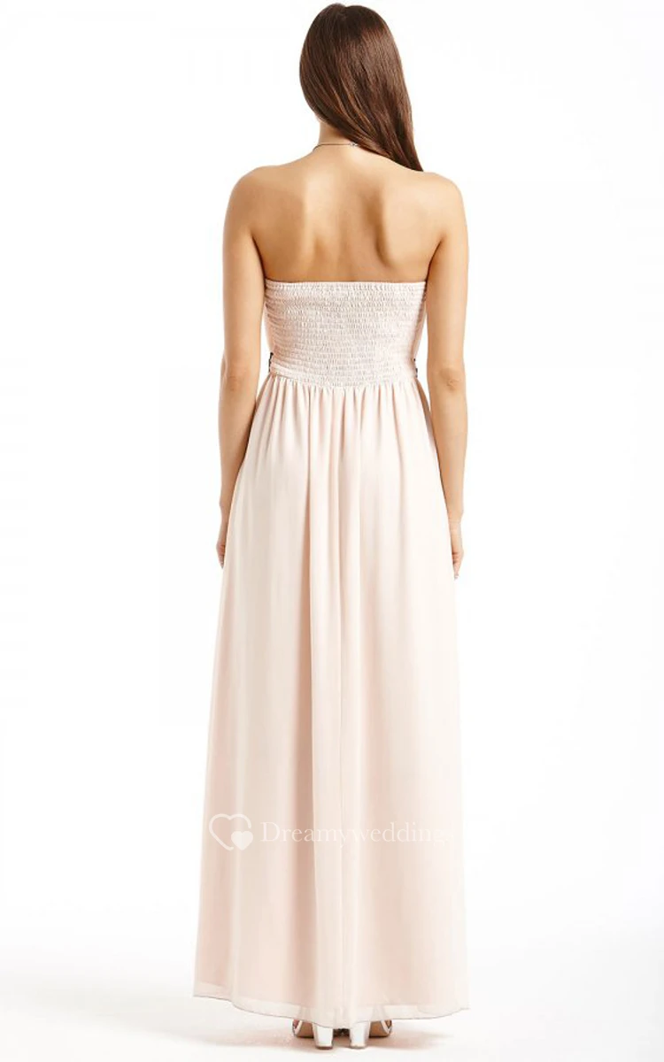 Long Chiffon Strapless Dress With Beaded Sash