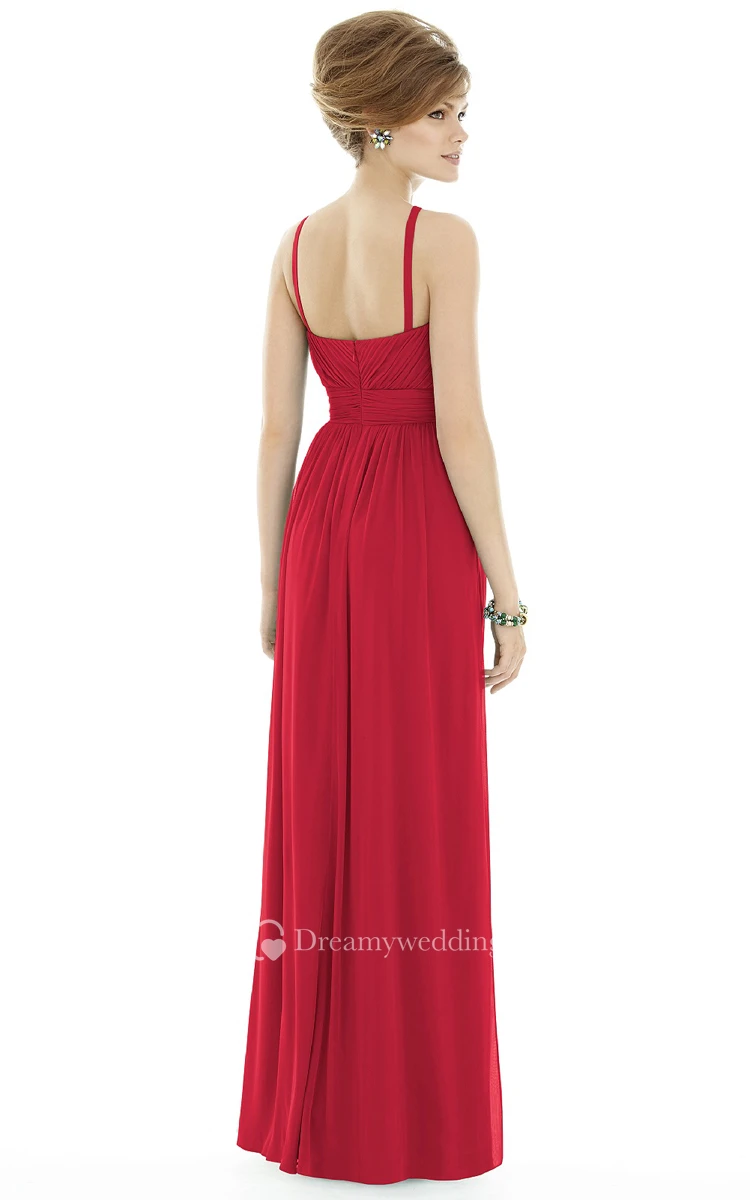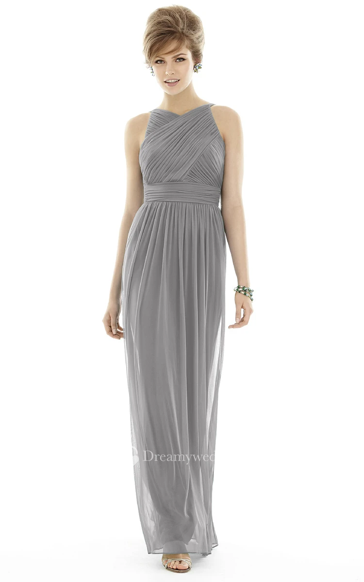 Long Criss Cross Sleeveless Chiffon Dress with Belt and Ruching
