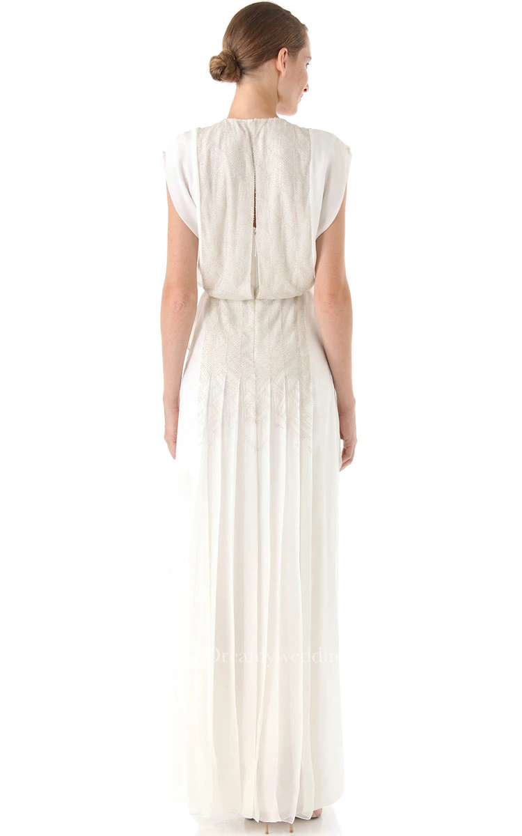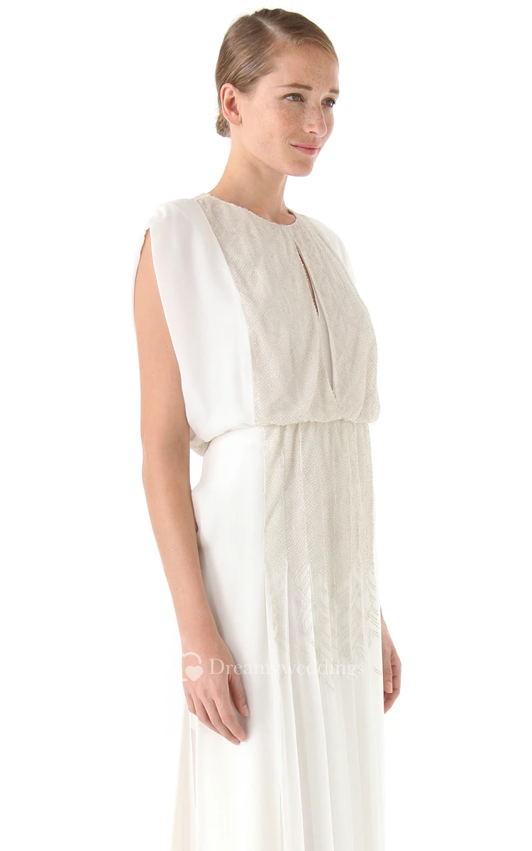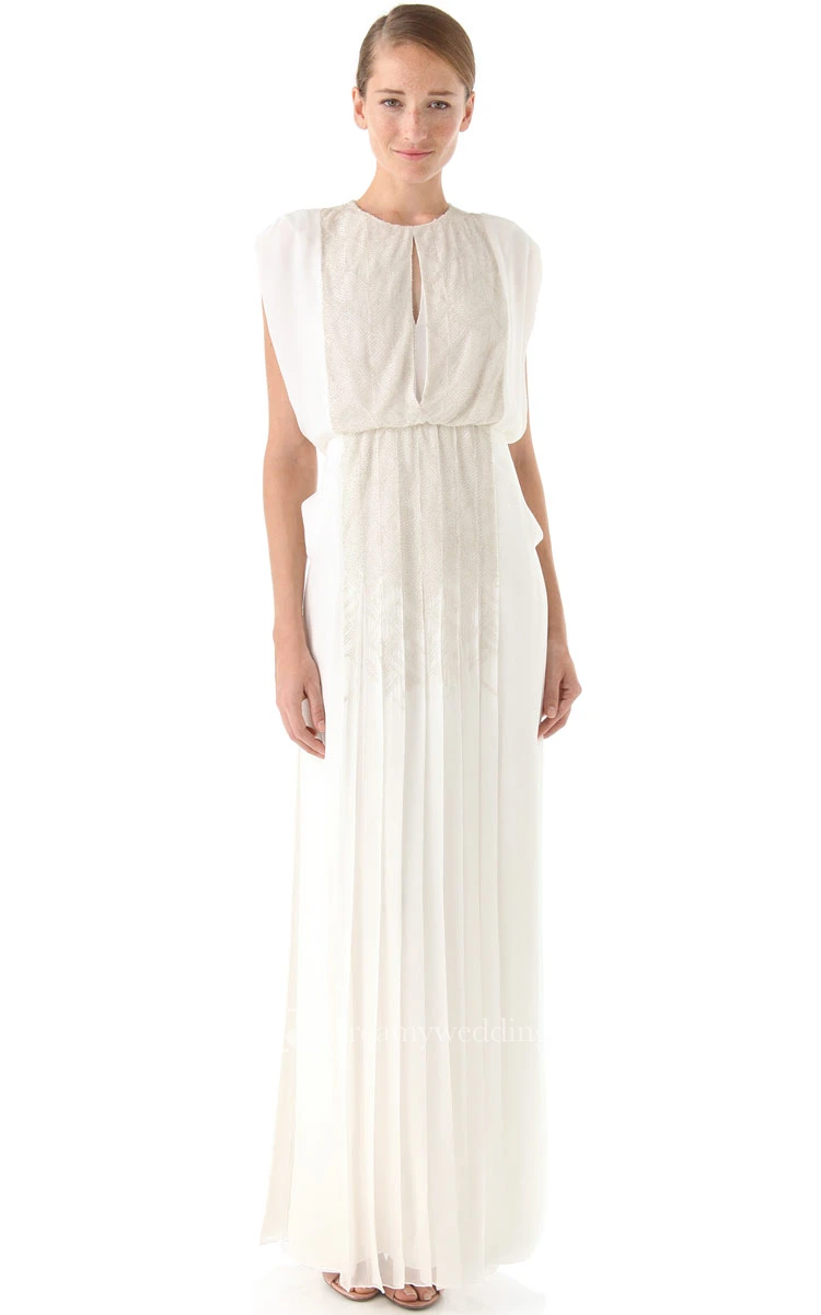 Long Jewel Neckline Sheath Chiffon Dress With Keyholes