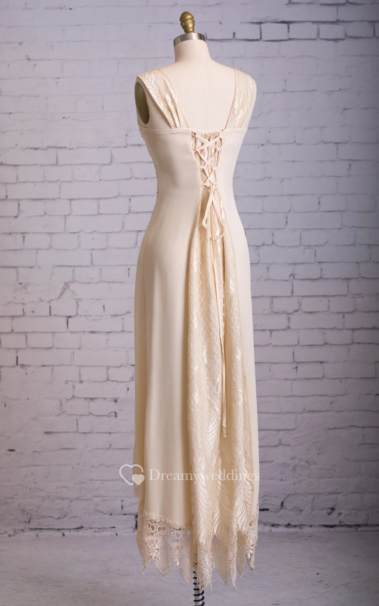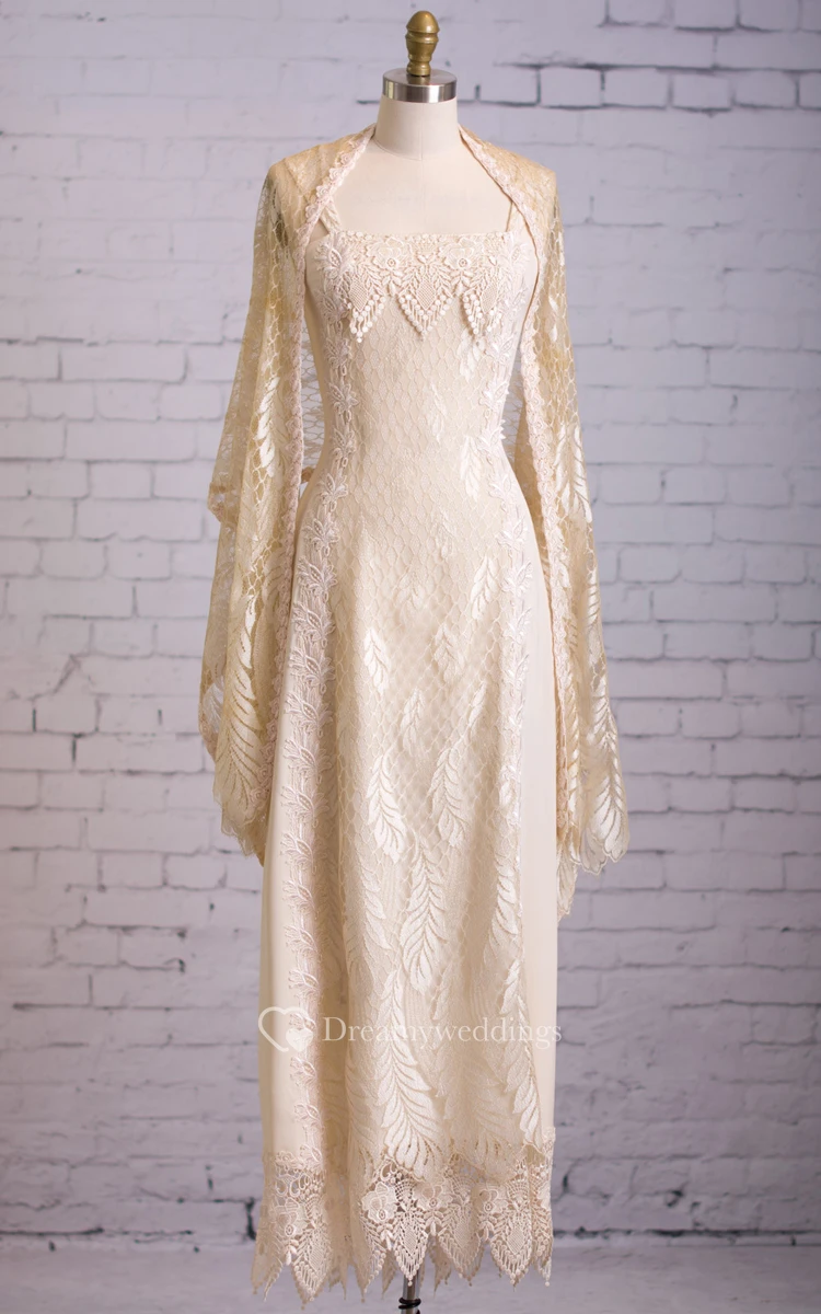 Long Lace Lace-Up Back Dress With Illusion Cape