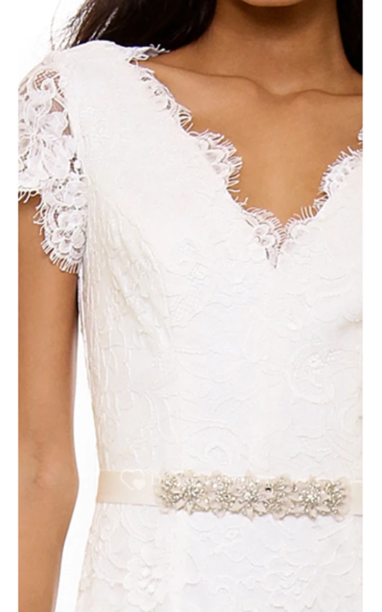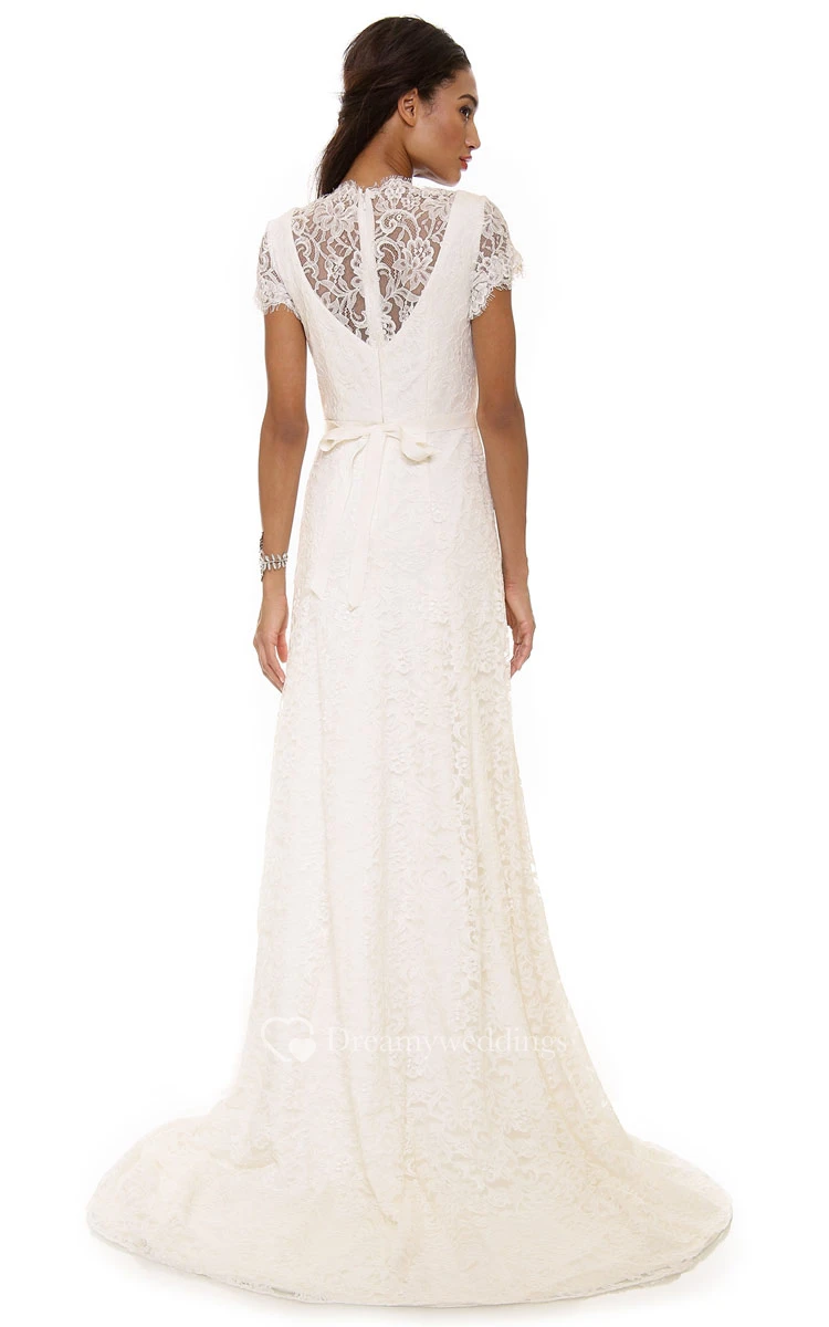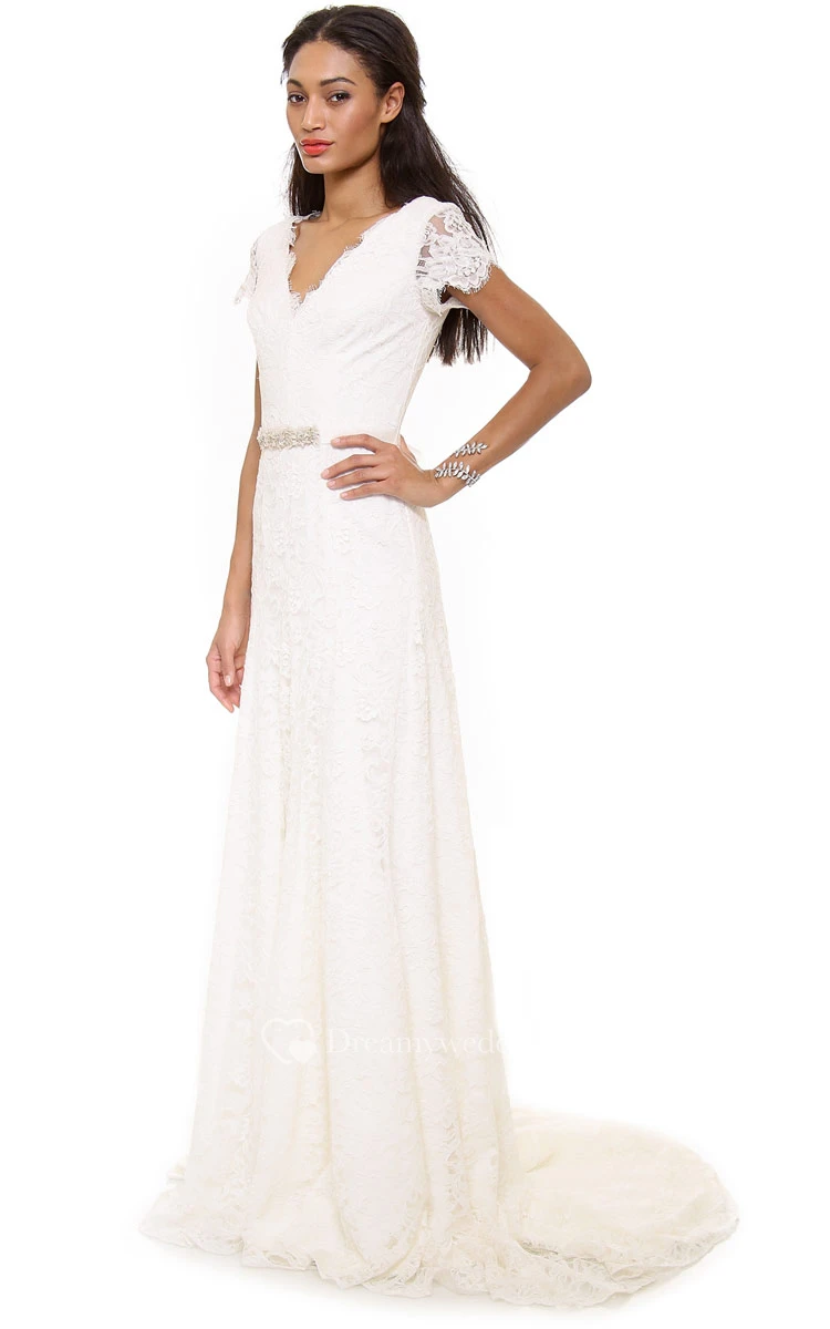 Long Low-V Neckline A-line Lace Dress With Low-V Back Style
