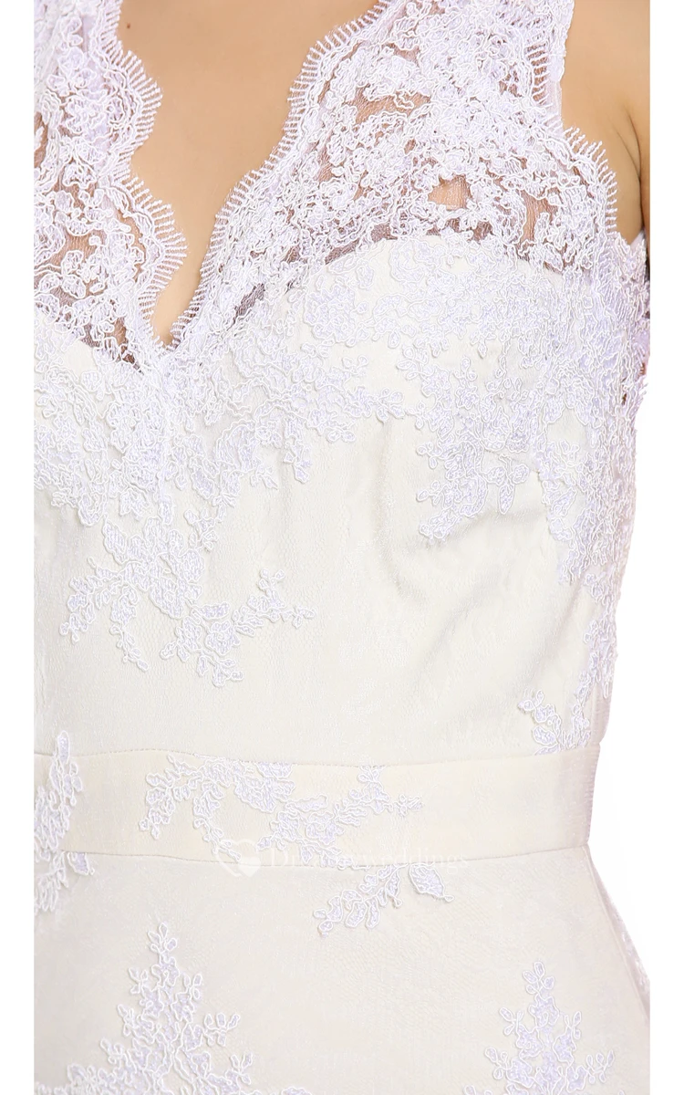 Long Low-V Neckline Sheath Satin Dress With Keyhole Back