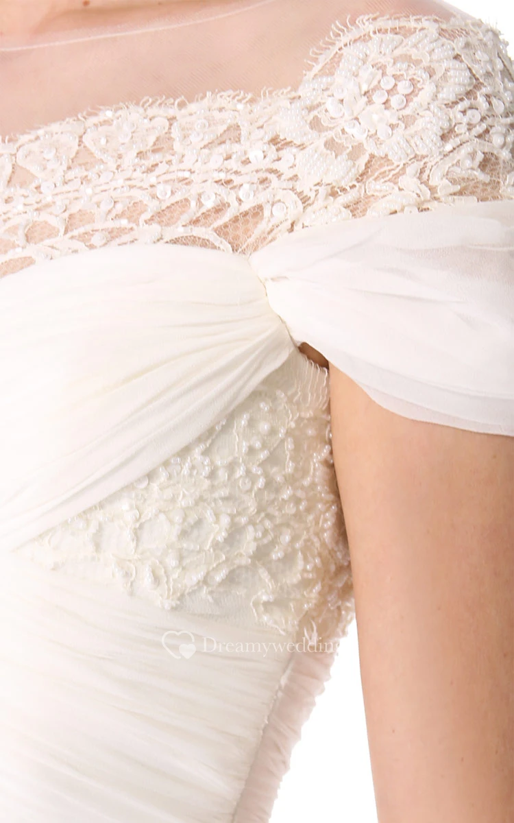 Long Off-Shoulder Empire Chiffon Dress With Keyhole