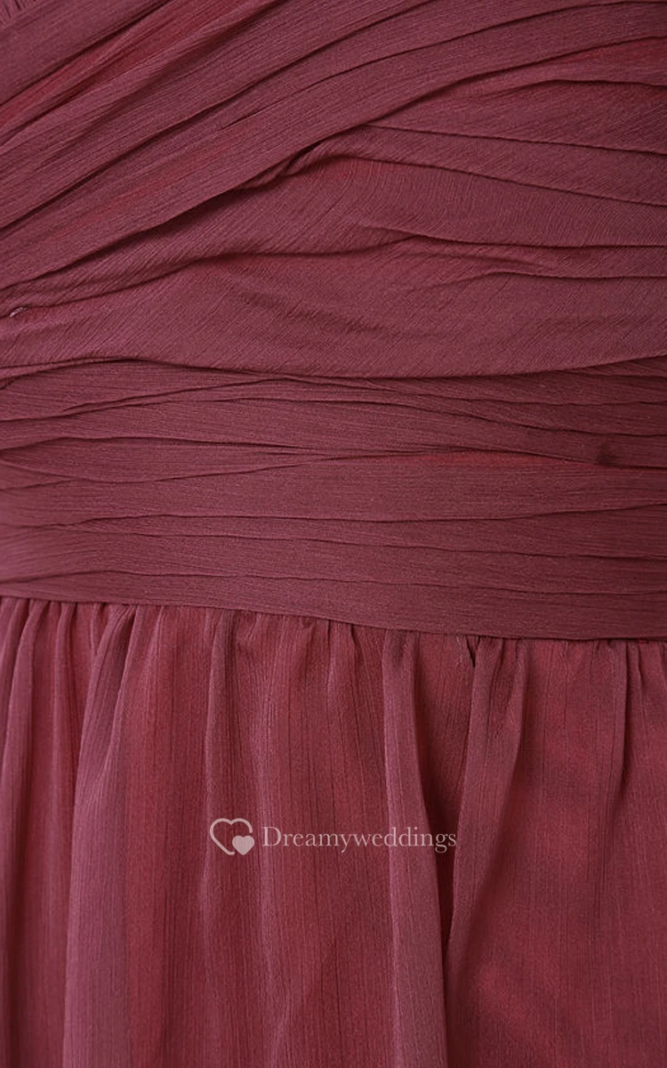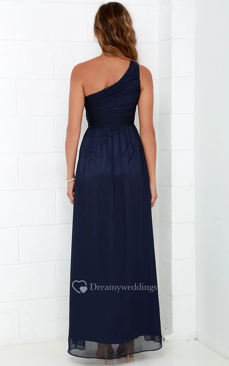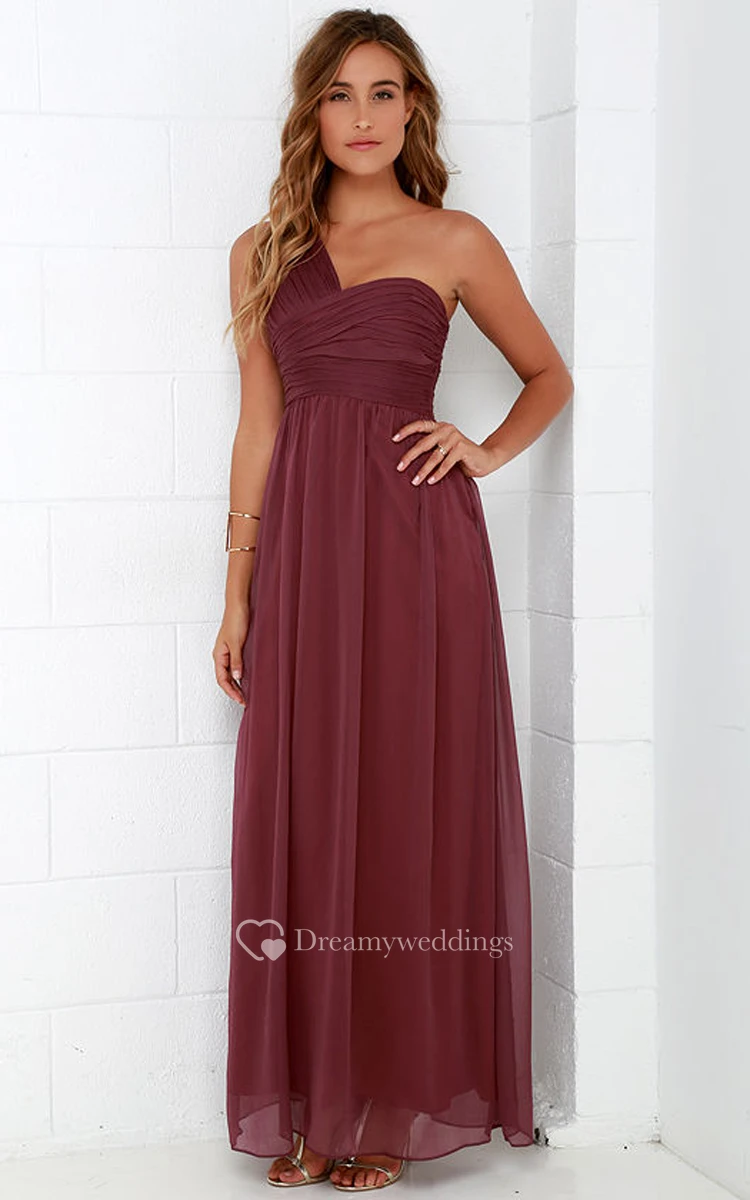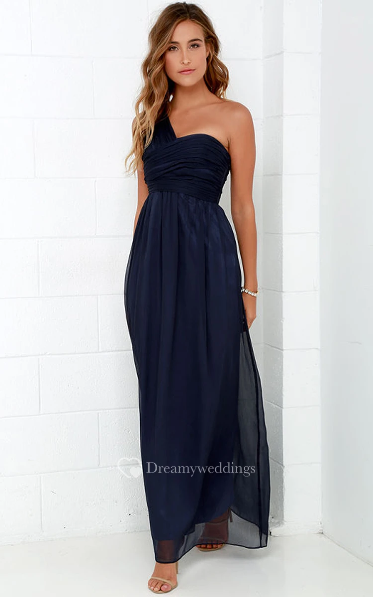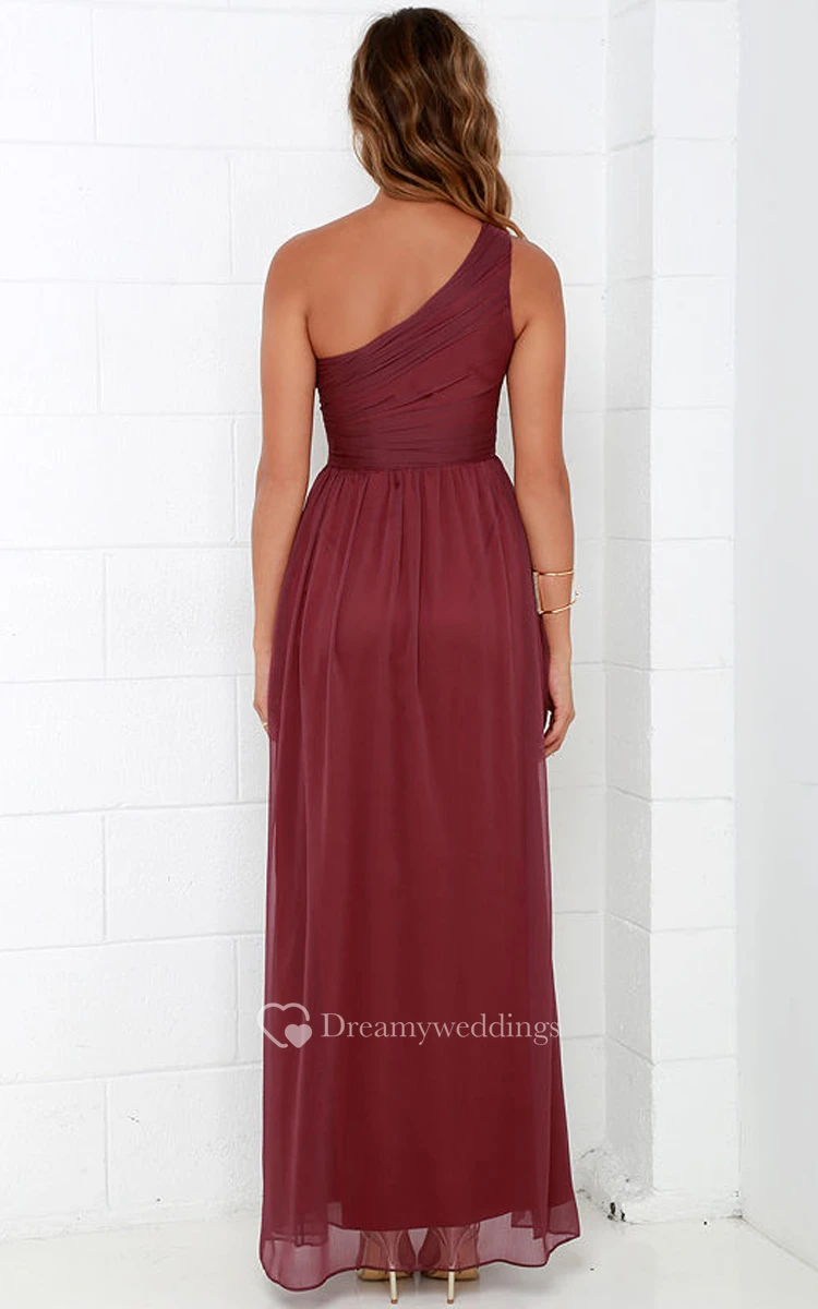 Long One-Shoulder Chiffon Unique Dress With Ruching