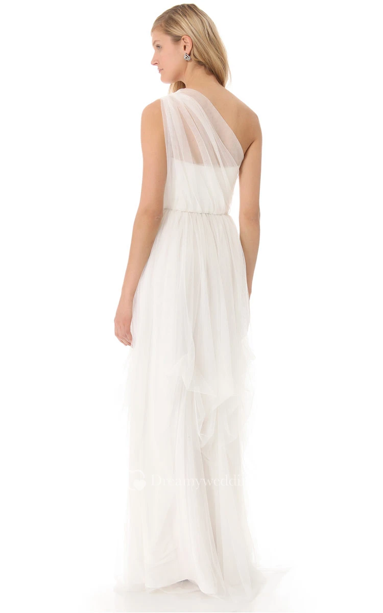 Long One-shoulder Sheath Organza Dress With Ruffles