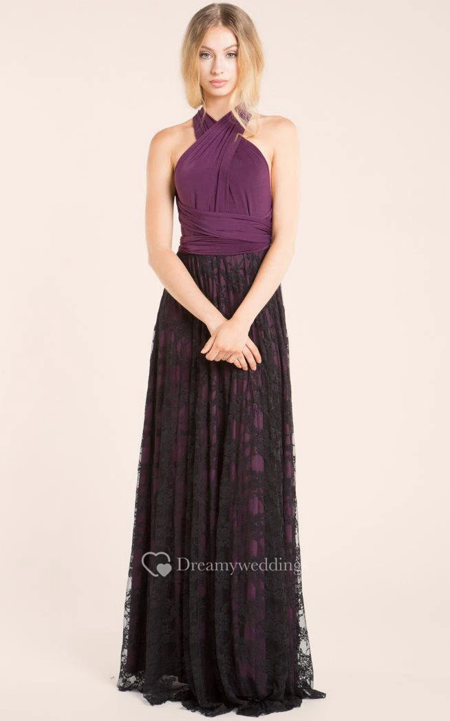Long Purple Lace Aubergine Lace Long Purple Black Lace Aubergine Eggplant Lace Gown Black Lace Bridesmaid Dress