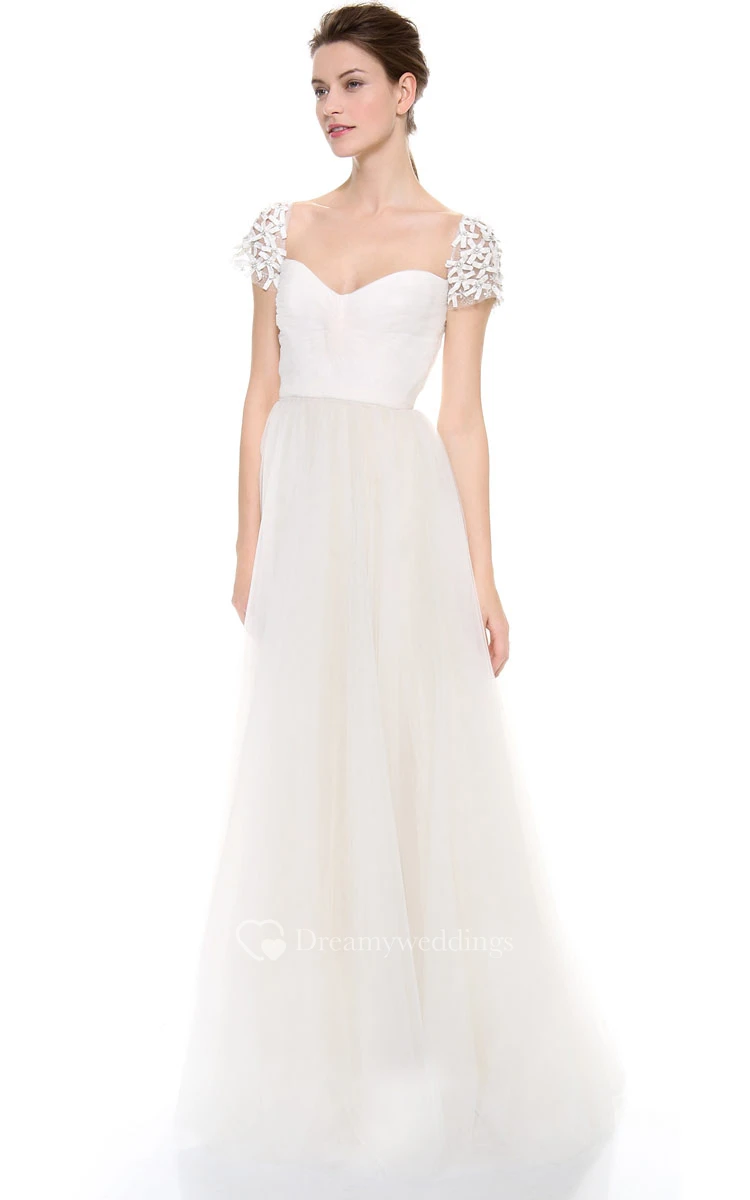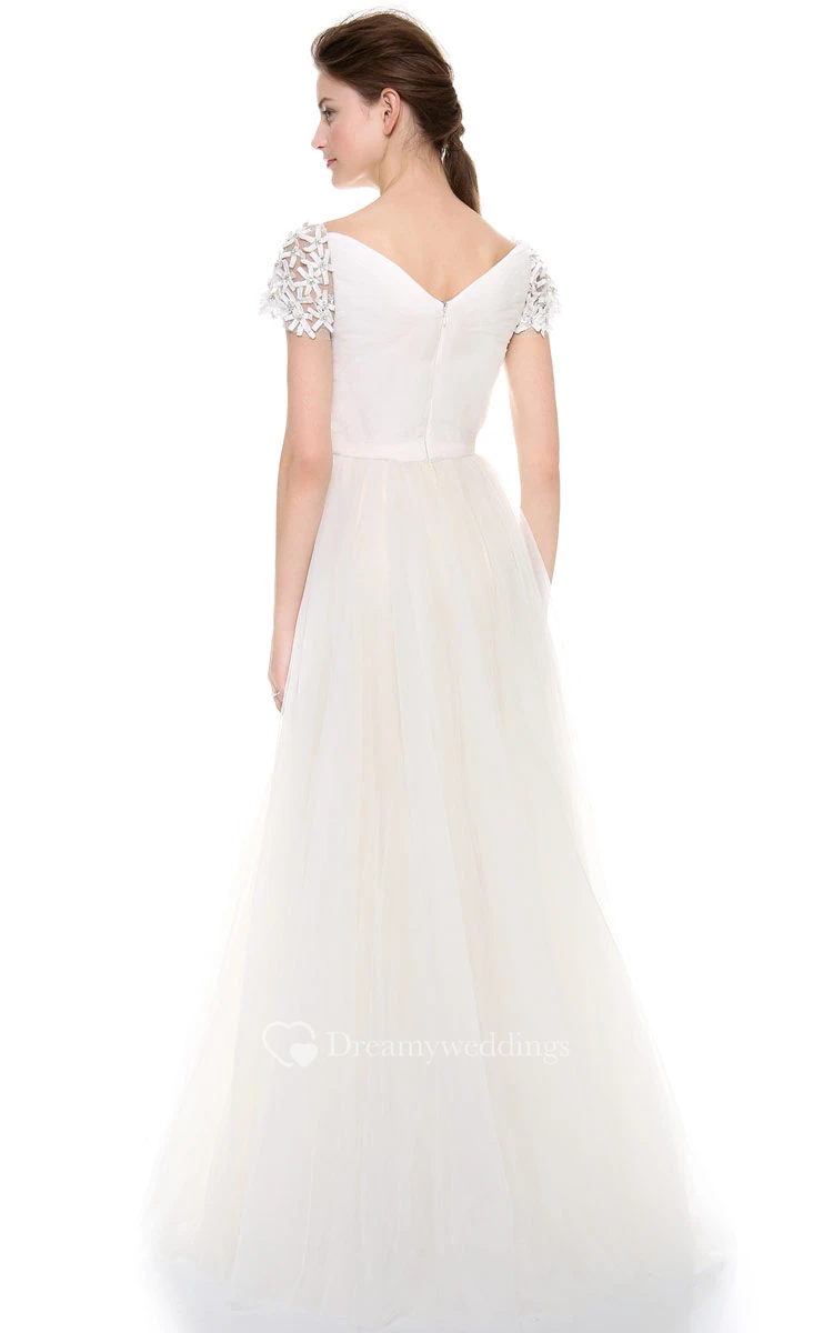 Long Queen Anne A-line Organza Dress With Beaded Flower