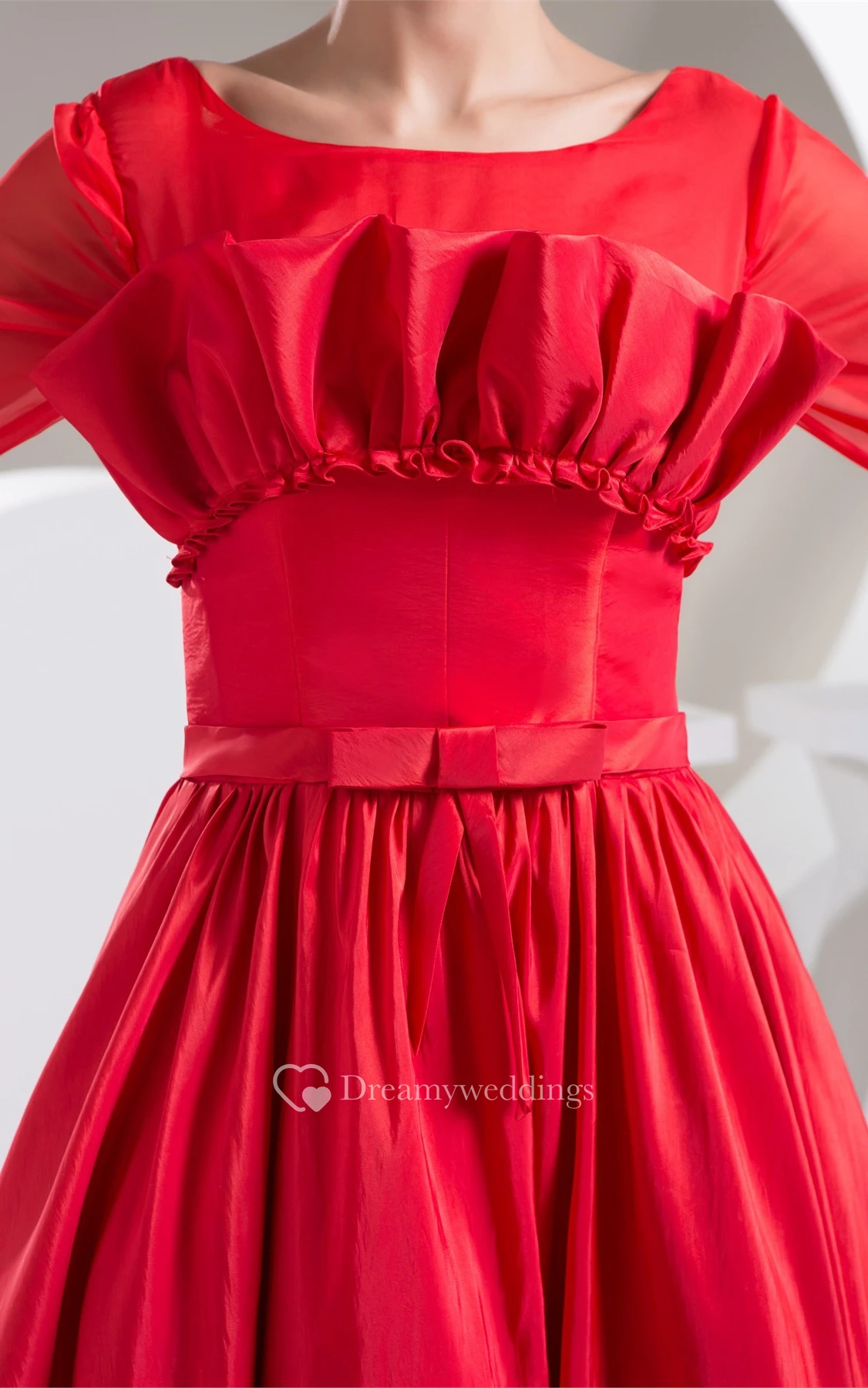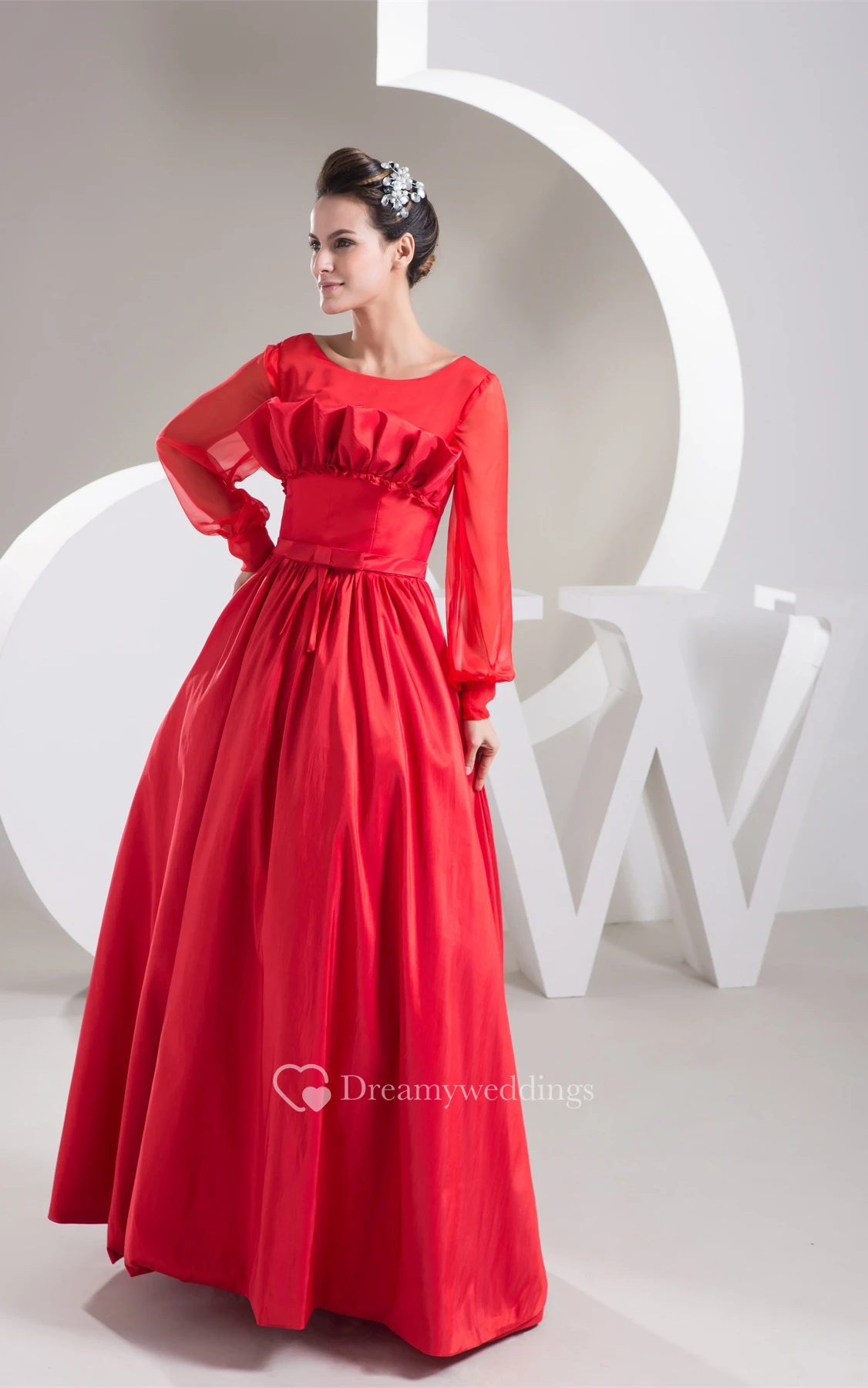 Long-Sleeve A-Line Maxi Pleats and Gown With Bow