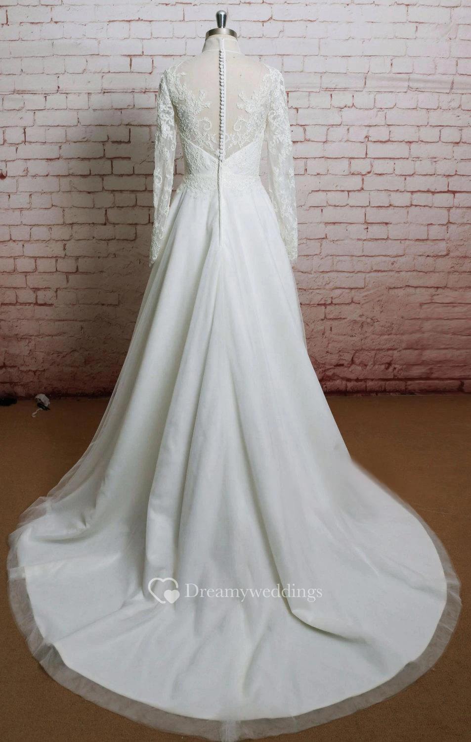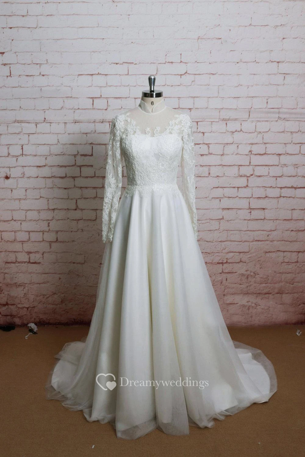 Long Sleeve High Neck A-Line Tulle Dress With Lace Bodice and Illusion Back