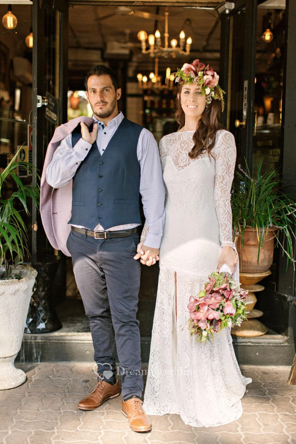 Long Sleeve High Neck Mermaid Lace Gown With Split Front