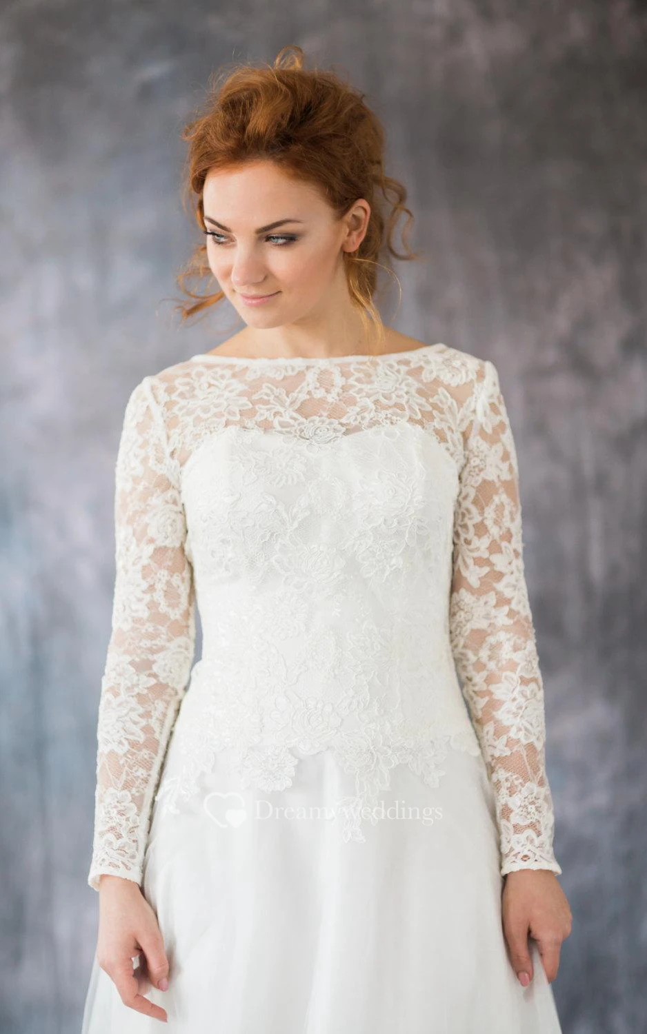 Long Sleeve Lace and Organza A-Line Dress With Bateau Neckline