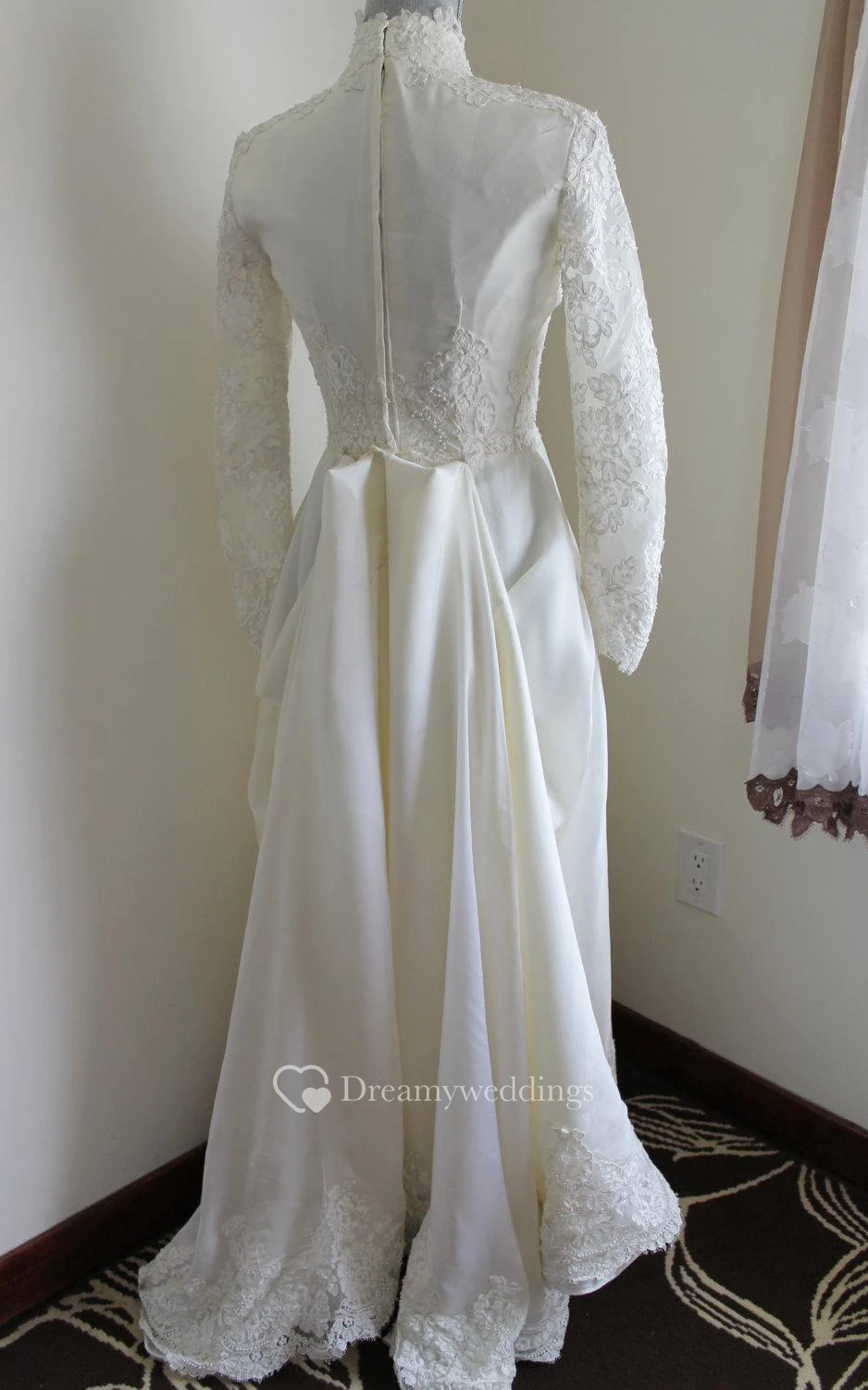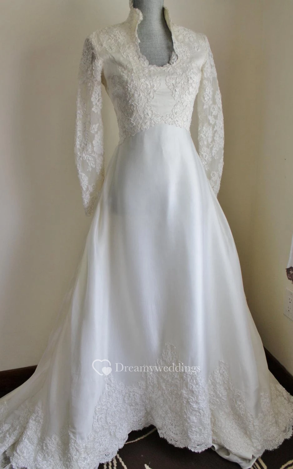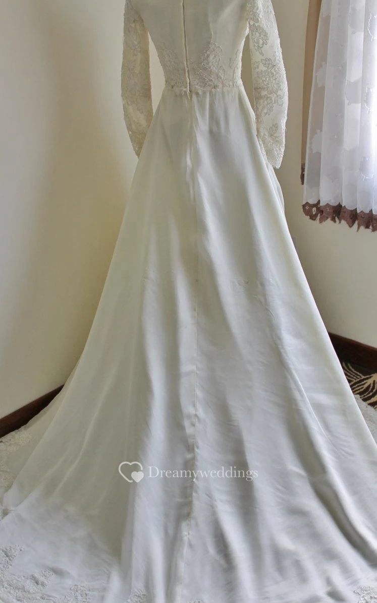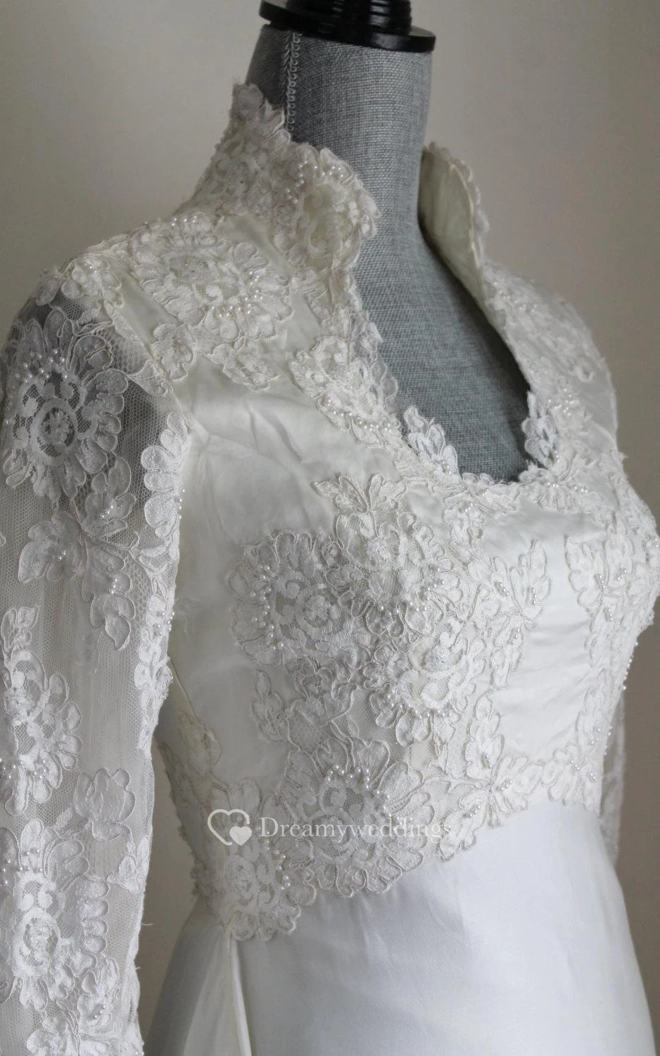 Long Sleeve Lace and Satin Dress With Queen Anne Neckline