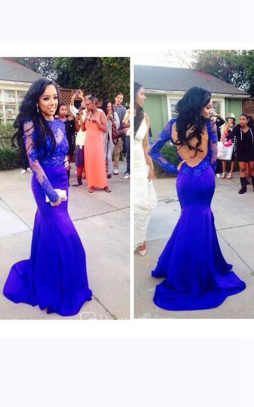 Long Sleeve Mermaid Dress with Open Back and Lace