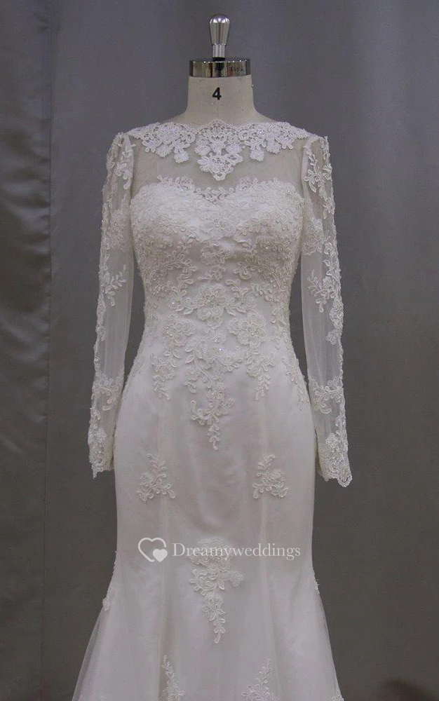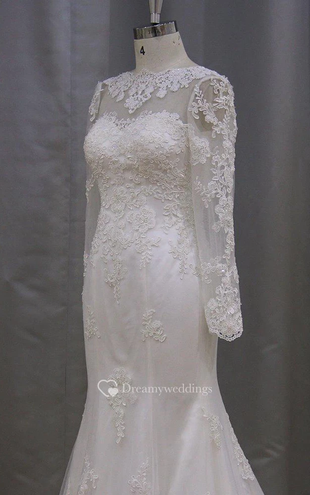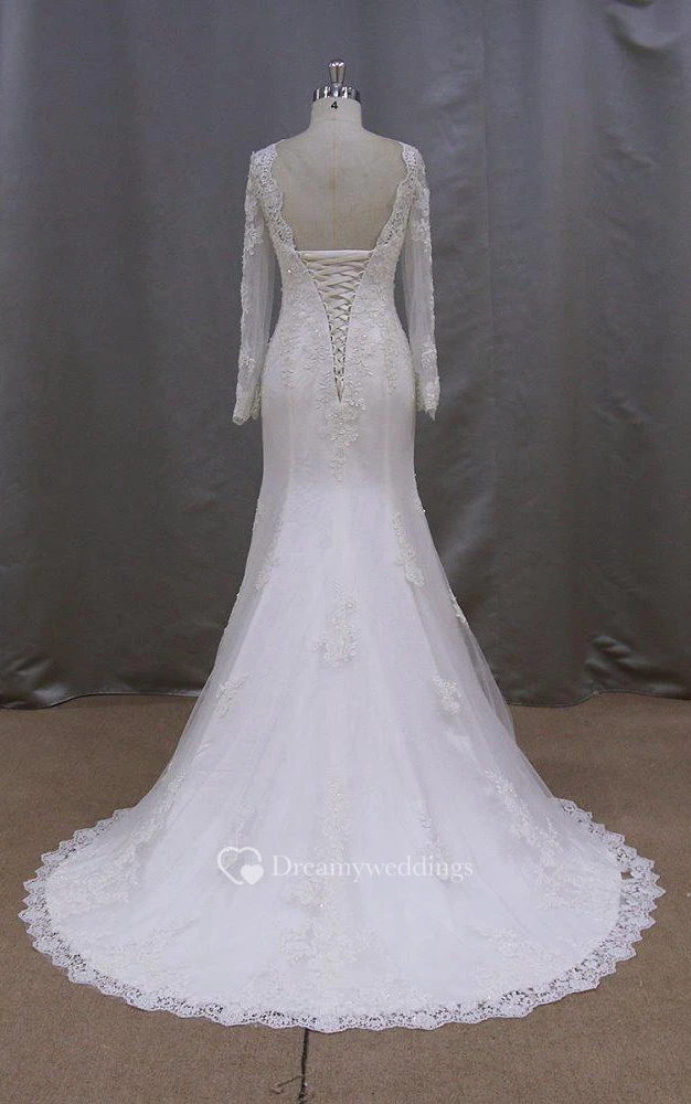 Long Sleeve Mermaid High Neck Lace Dress With Lace-Up Back