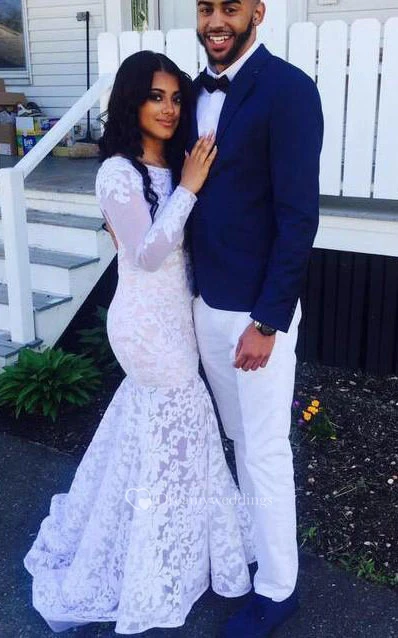 Long Sleeve Sweep Train Mermaid Backless Lace Dress