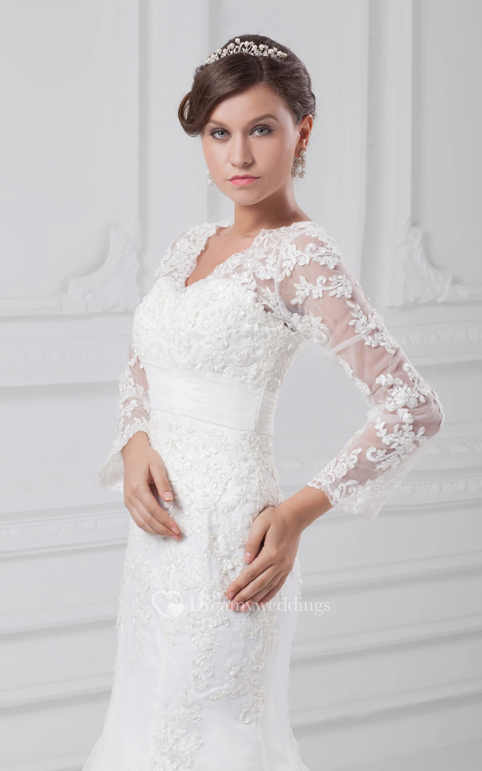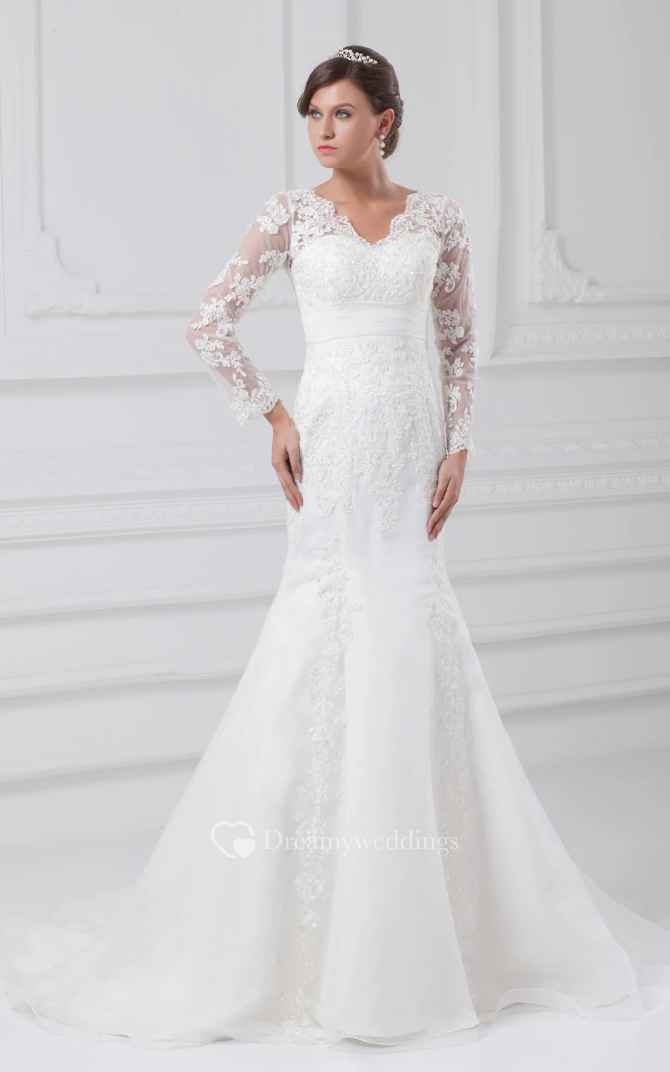 Long-Sleeve V-Neck Mermaid Dress With Lace Appliques