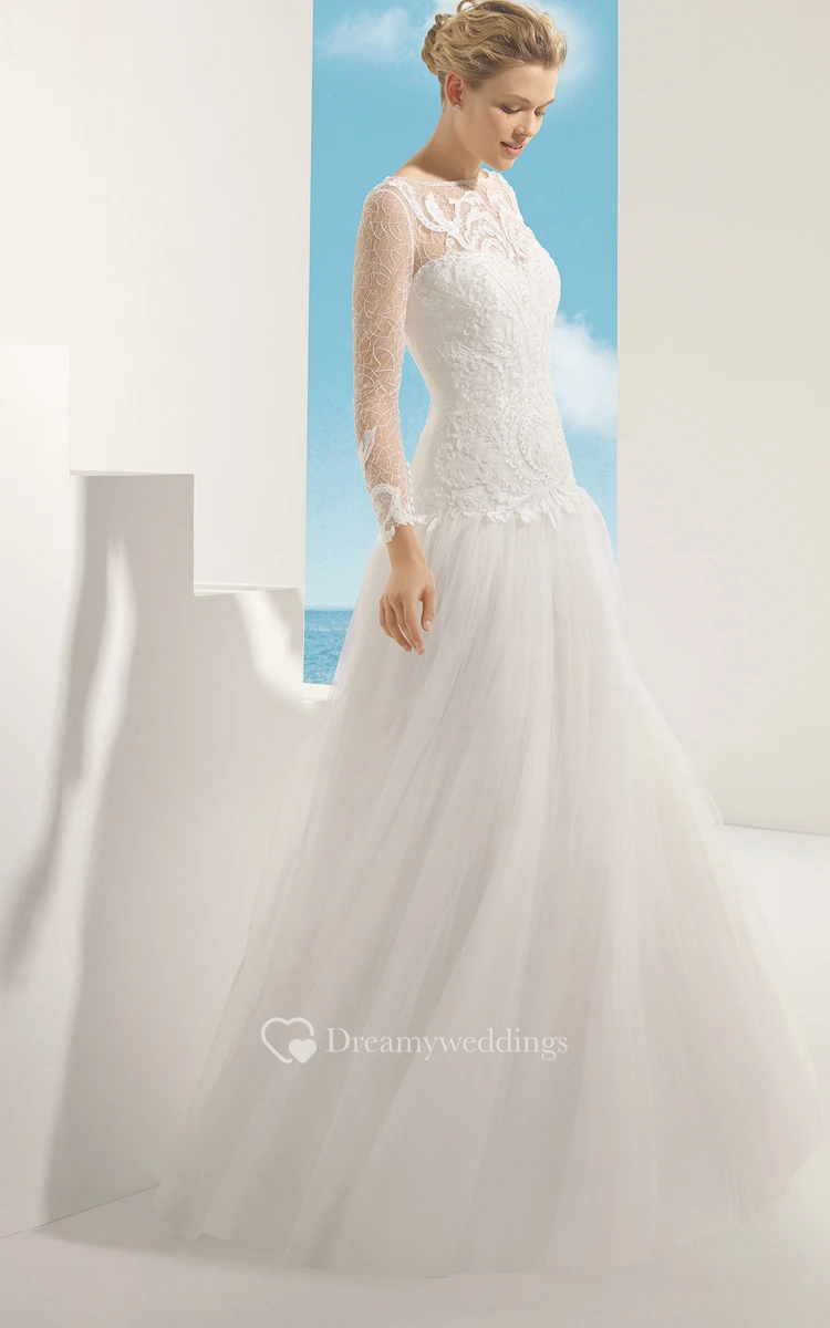 Long-Sleeved Delicate Ruffled Dress With Lacy Bodice
