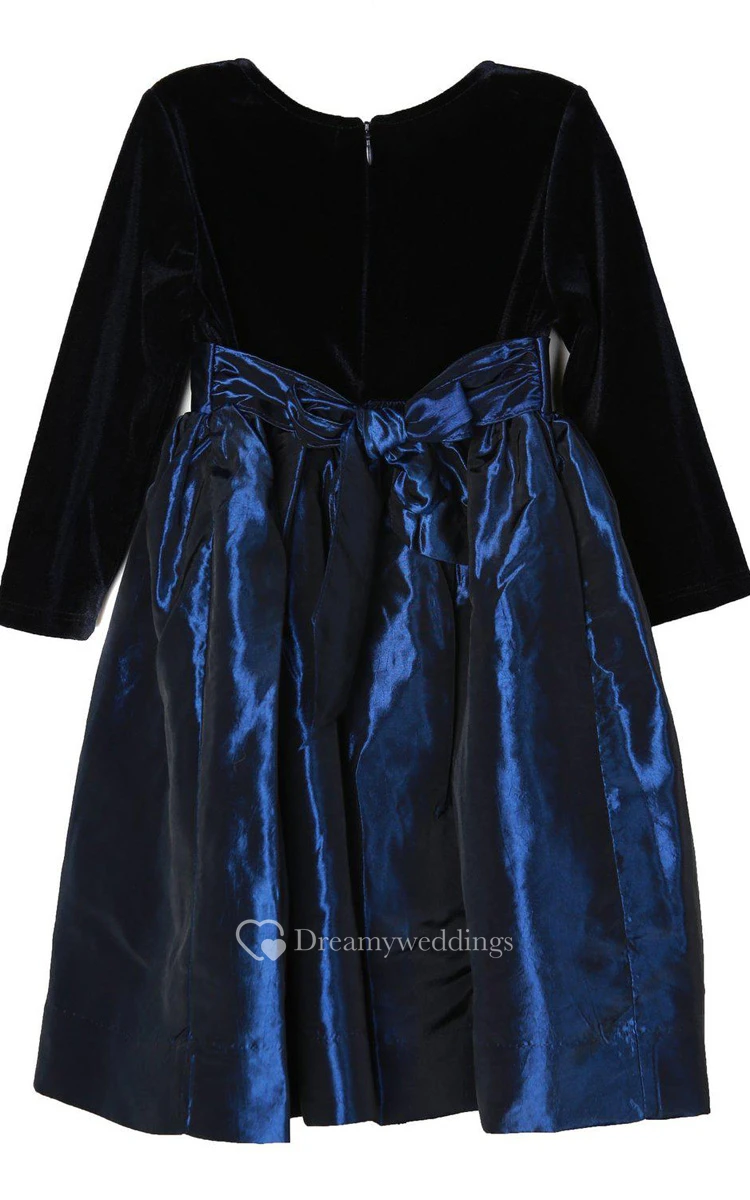 Long-sleeved Scoop-neck A-line Dress With Flowers and Bow