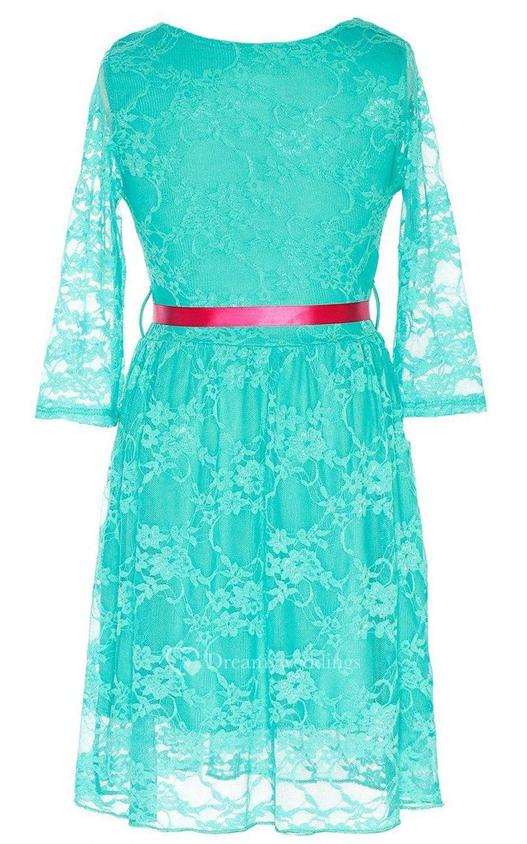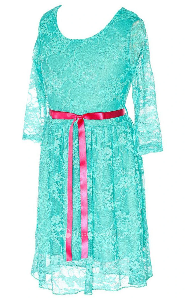 Long-sleeved Scoop-neck A-line Dress With Illusion Style
